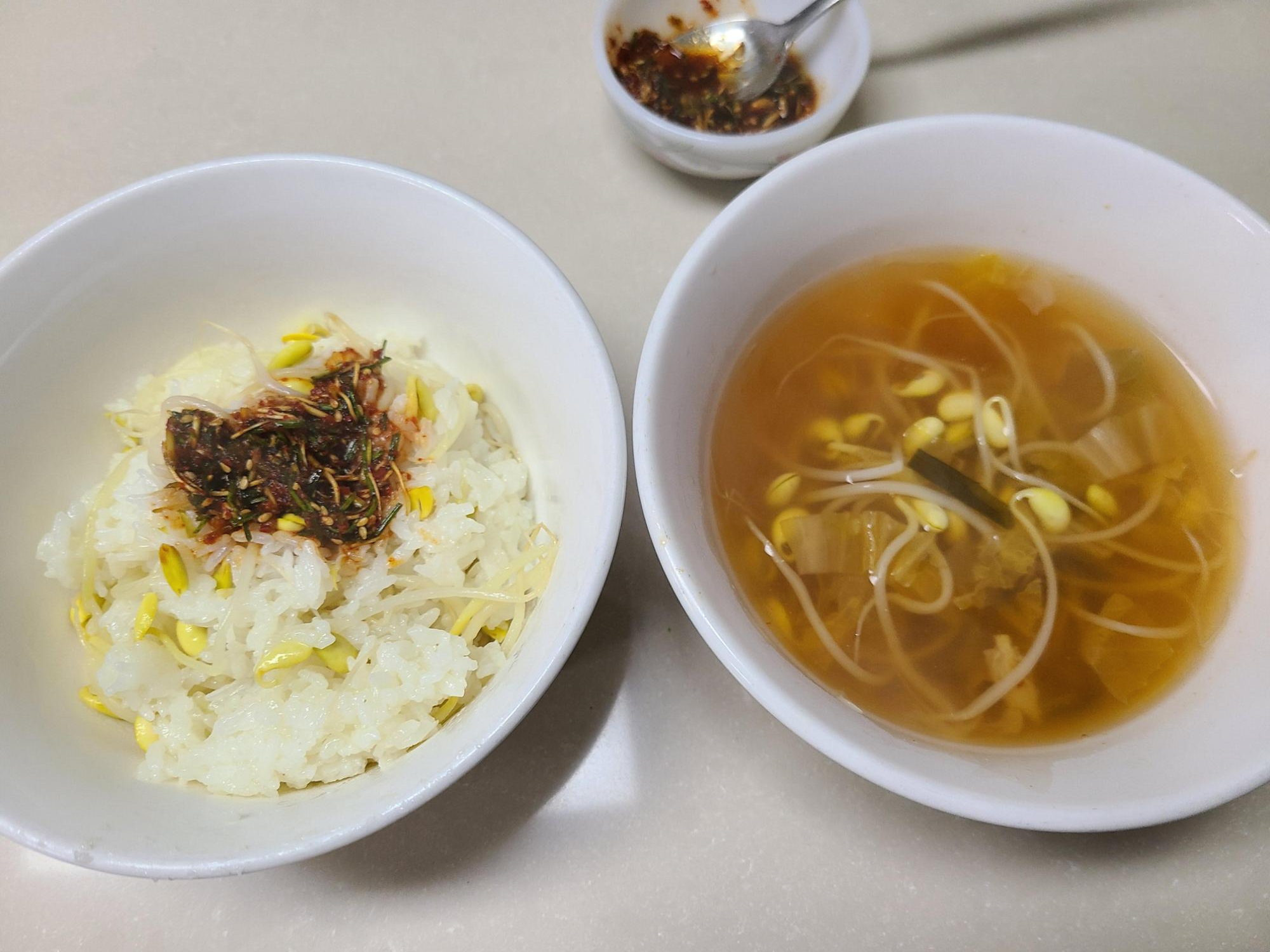 직접 기른 콩나물로 콩나물 밥과 김치 콩나물국 끓이기