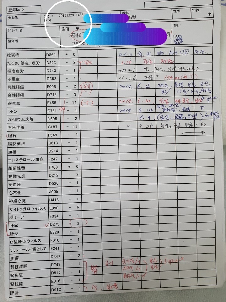 이 검사 방법은 30년 전쯤 일본을 통해 도입된 것으로 QRS 양자 공명 분석에 의한 검사법이라고 설명을 해줬다. 사실 전문적인 부분은 설명을 들었어도 잘 기억이 나지 않고 MRI검사법과 같은 원리의 첨단 분석법으로 검사방법이 인체에 해가 없다는 것과 이 검사법을 전문적으로 활용하는 한의사 선생님이 전국에 몇 명 되지 않는다는 이야기를 들은 거로 기억한다.