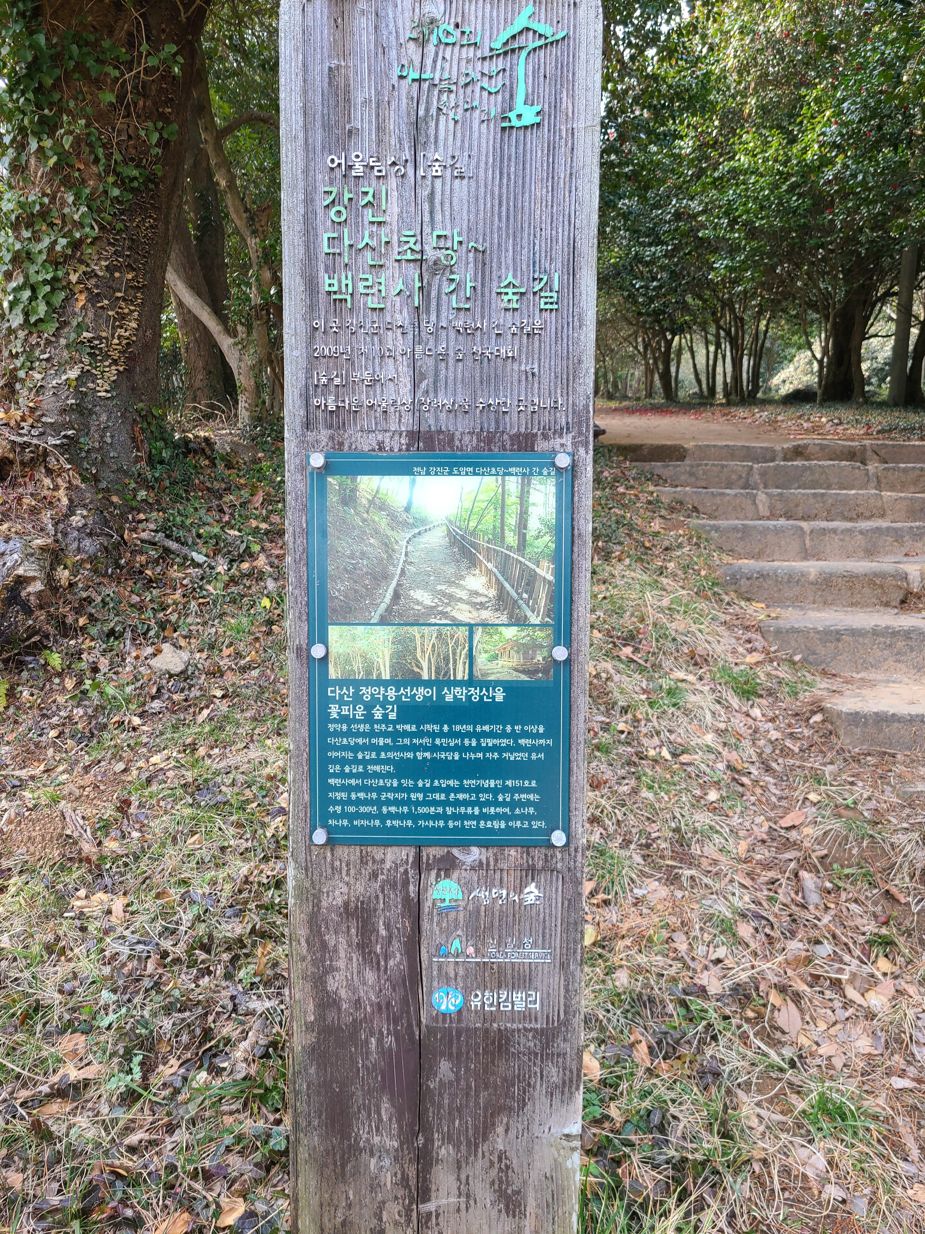 이곳 백련사와 다산초당으로 이어지는 길이 있다. 2년 전 여름 다산 박물관 쪽에 차를 세워놓고 다산초당에 올랐는데 길이 아름다워 걷다 보니 백련사가 내려다 보이는 곳까지 왔었다. 그런데 내가 피곤하여 더 이상 내려오지 못하고 해월루에서 앉아 강진만을 바라보고는 뒤돌아 내려갔던 적이 있다. 그때 오지 못했던 이곳을 동백꽃이 한창인 3월 첫 주에 오게 되었다.