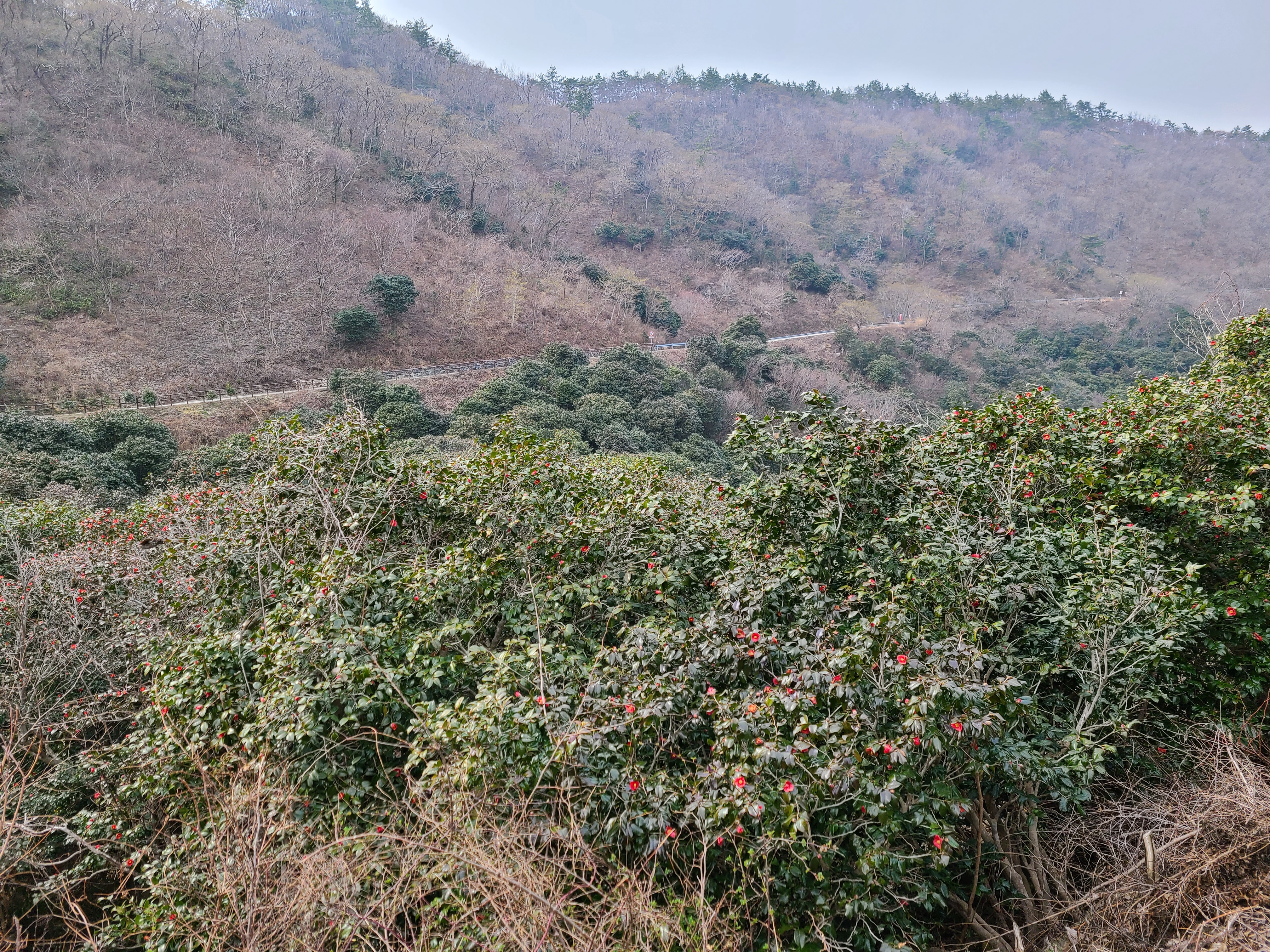 영암에 머물고 있으니 장흥 천관산 동백 생태숲까지 한 시간이면 갈 수 있다.