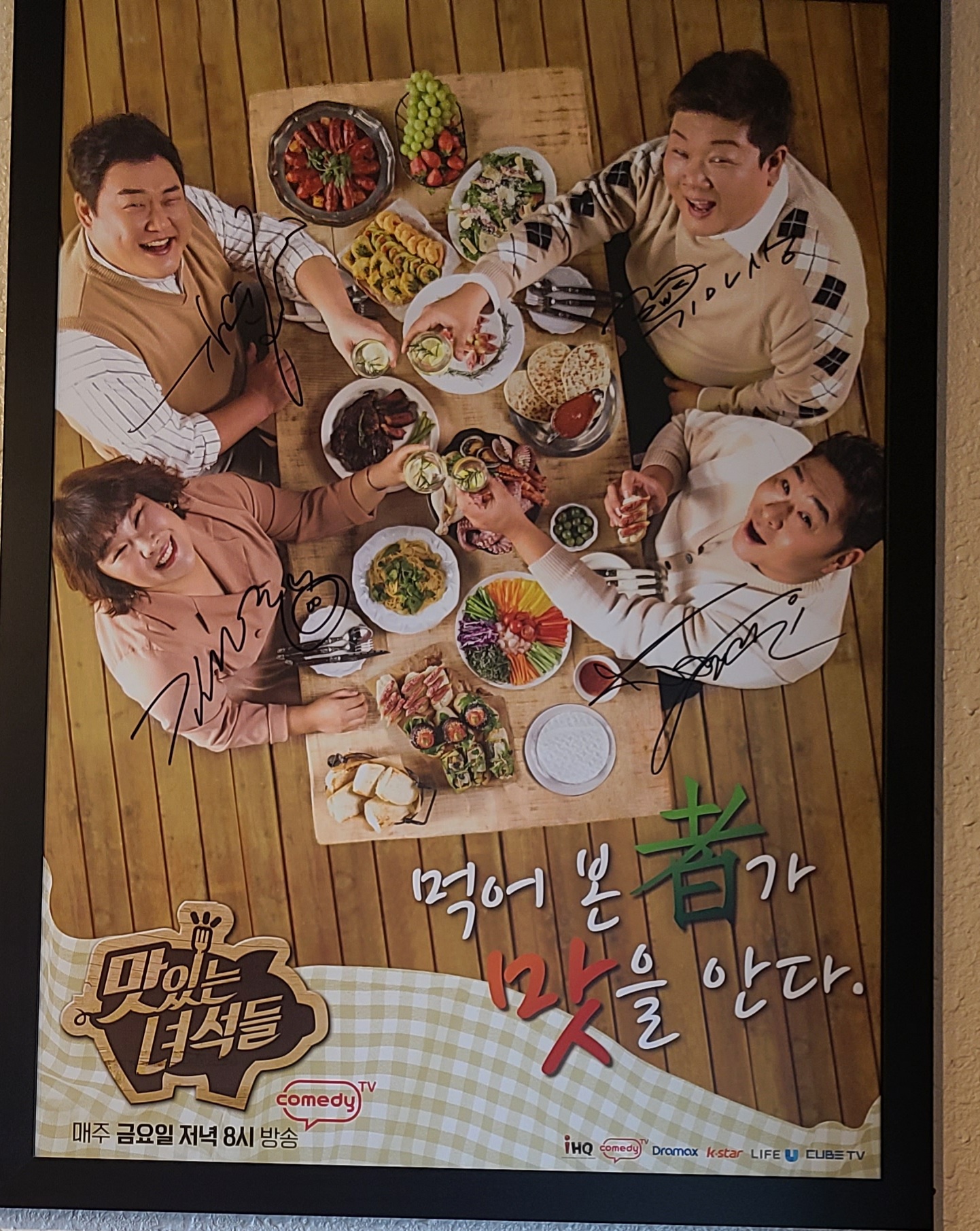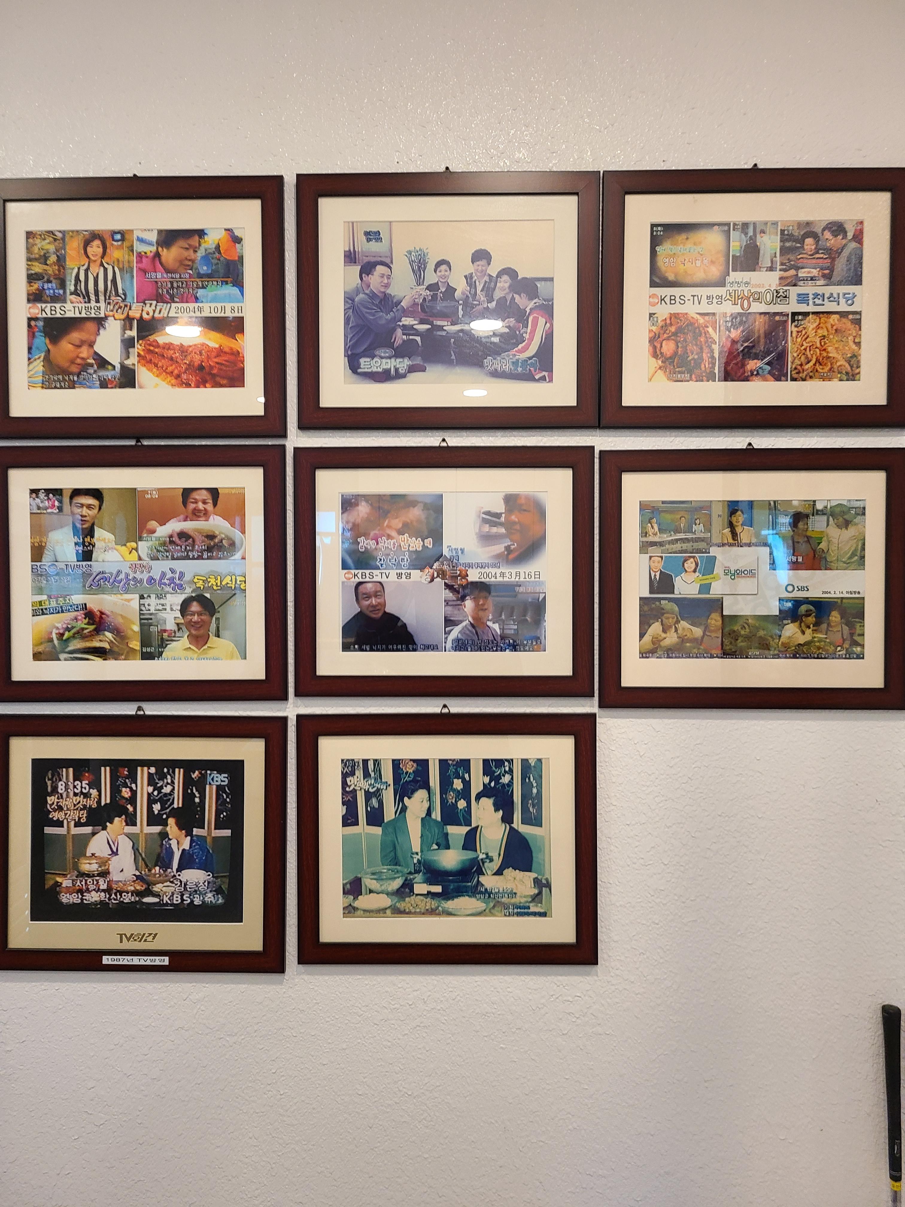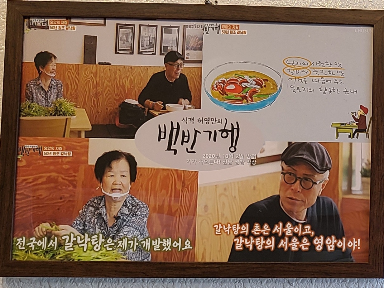 입구에 들어서니 오른쪽 벽에 '전통문화 보존 명인장'과 독천식당을 소개하는 사진으로 가득 차 있다.
