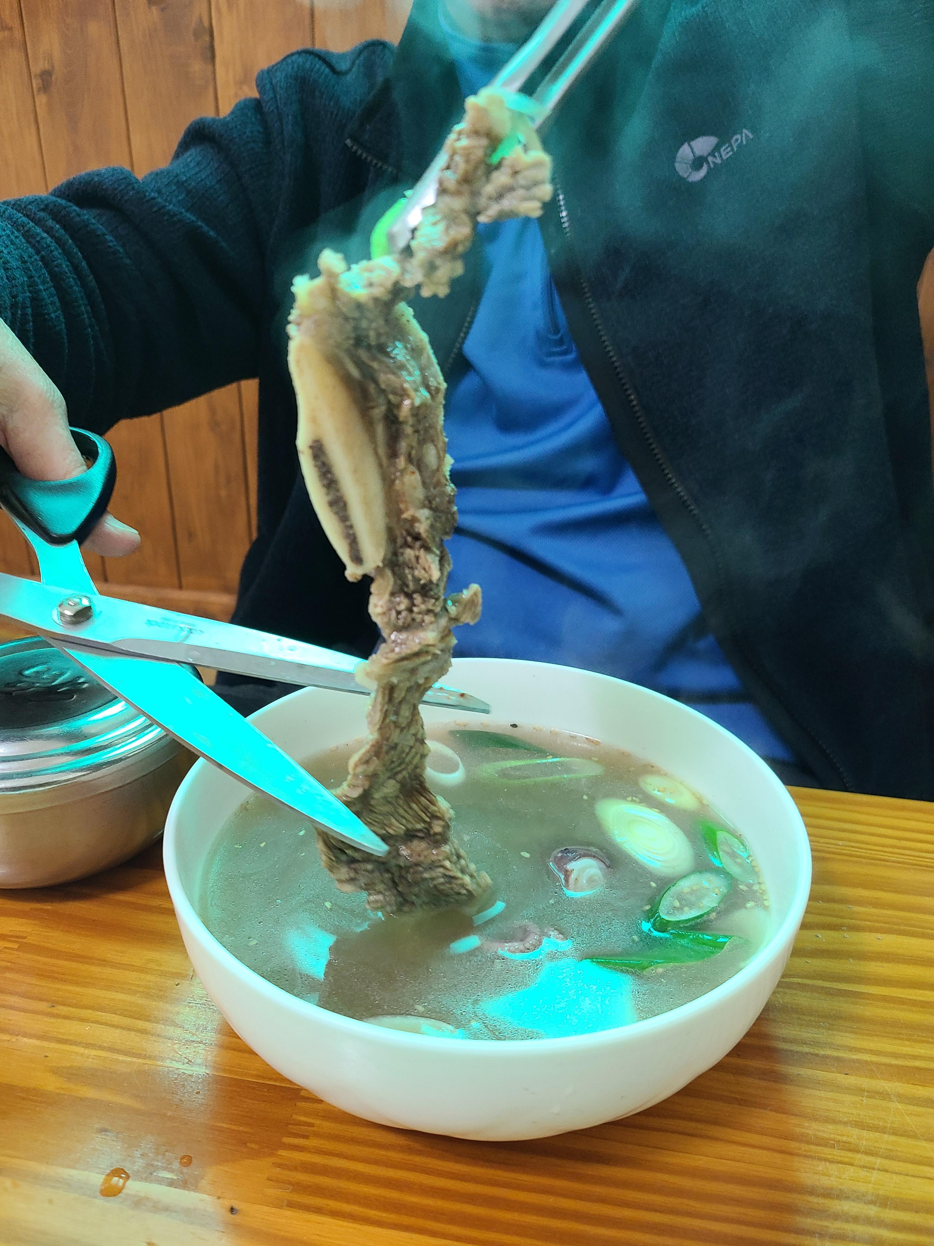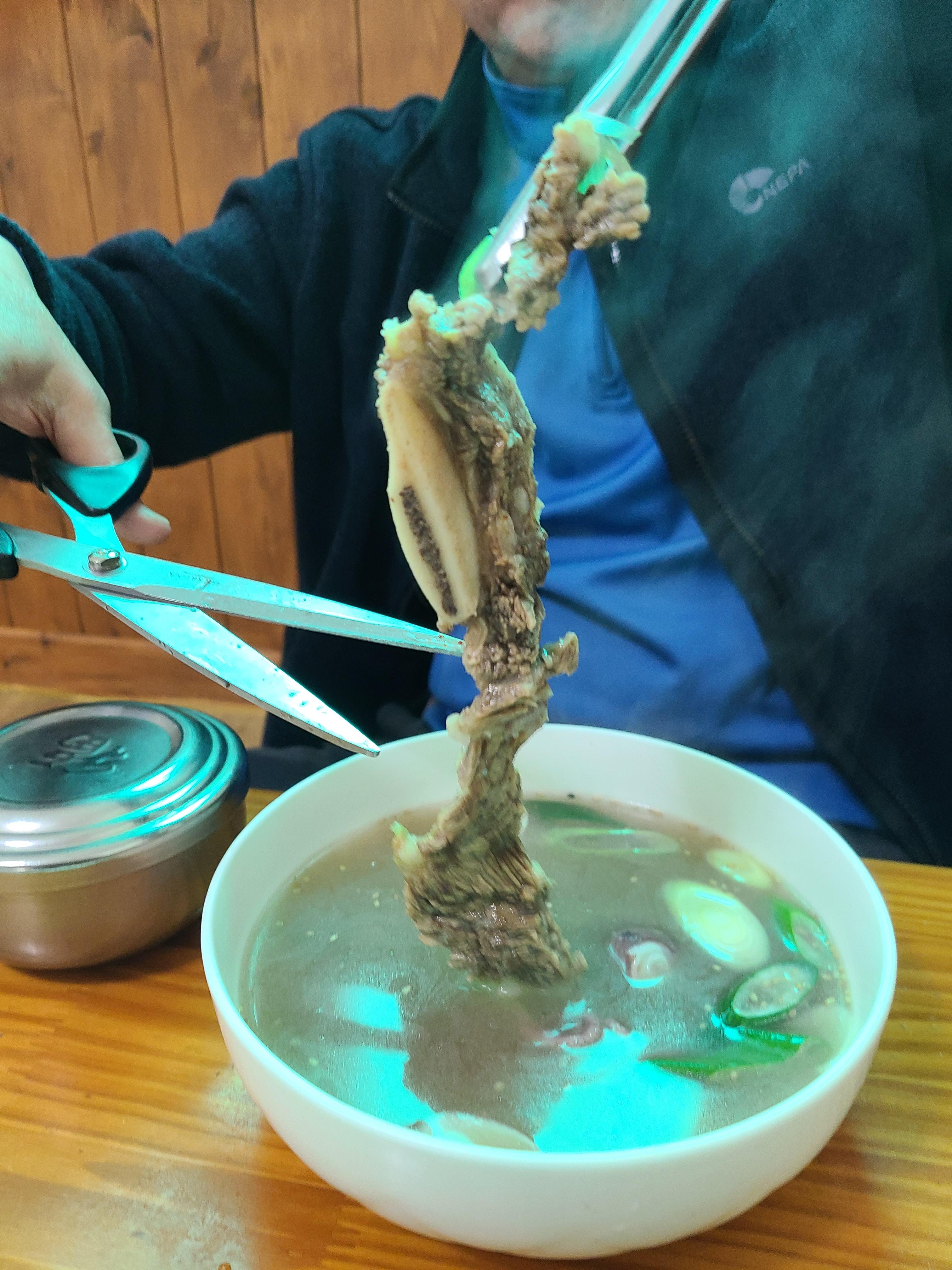 갈낙탕 안에 큼직한 갈비가 들어있다.