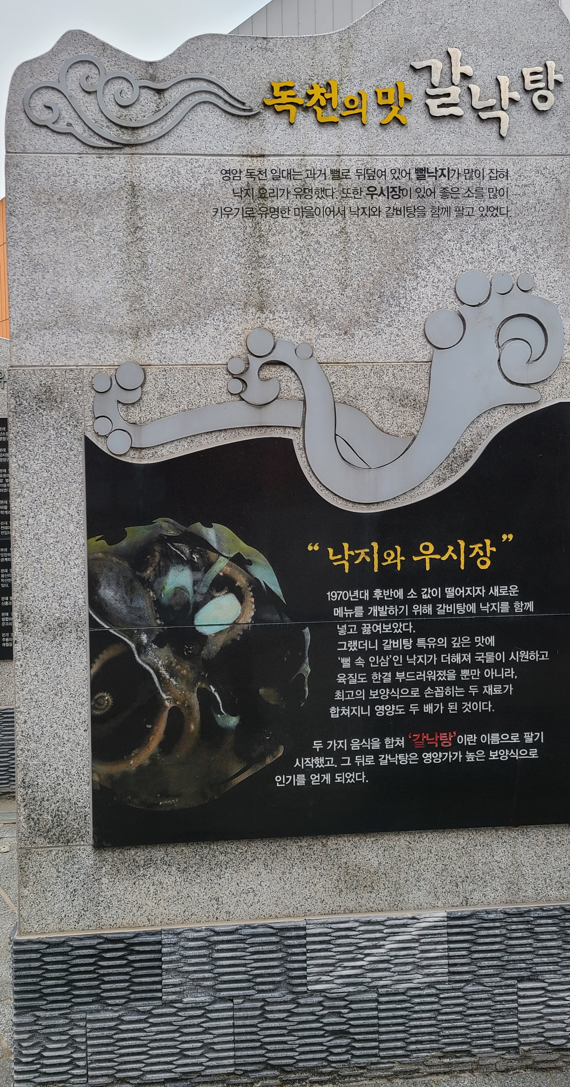 독천 낙지 골목에는 독천 낙지를 홍보하는 조형물들이 세워져 있는데 하나하나 읽어보는 재미도 있다.