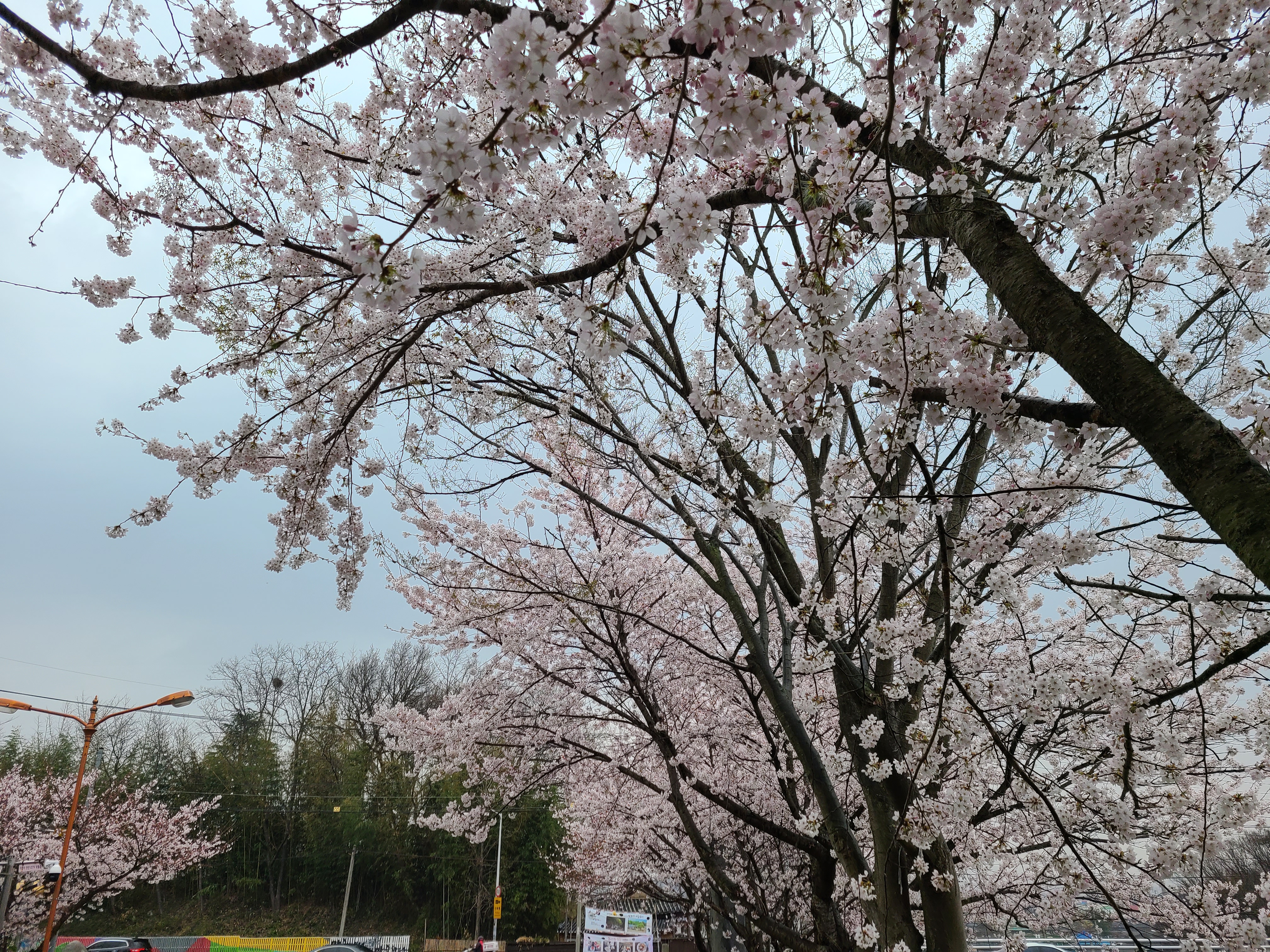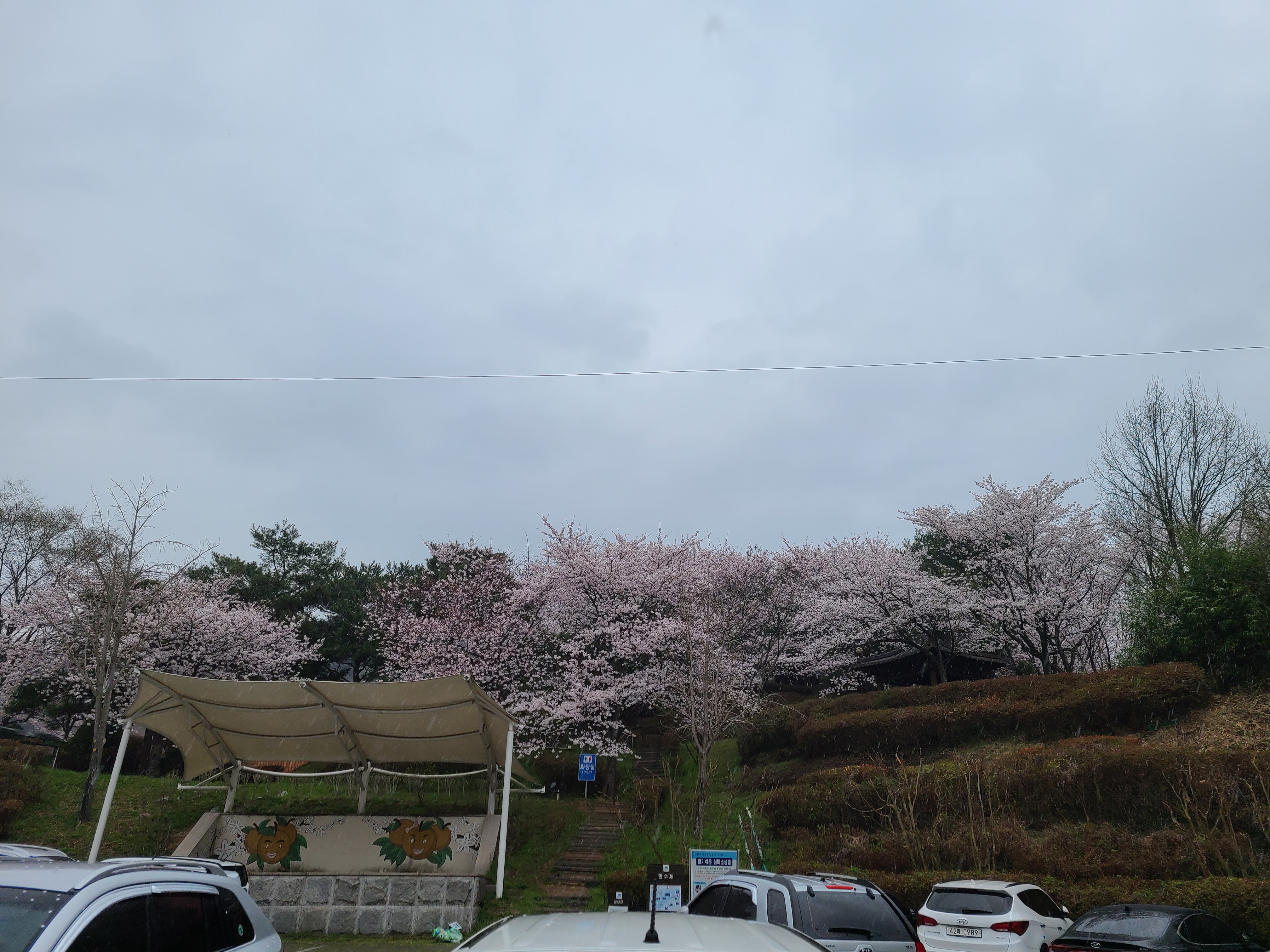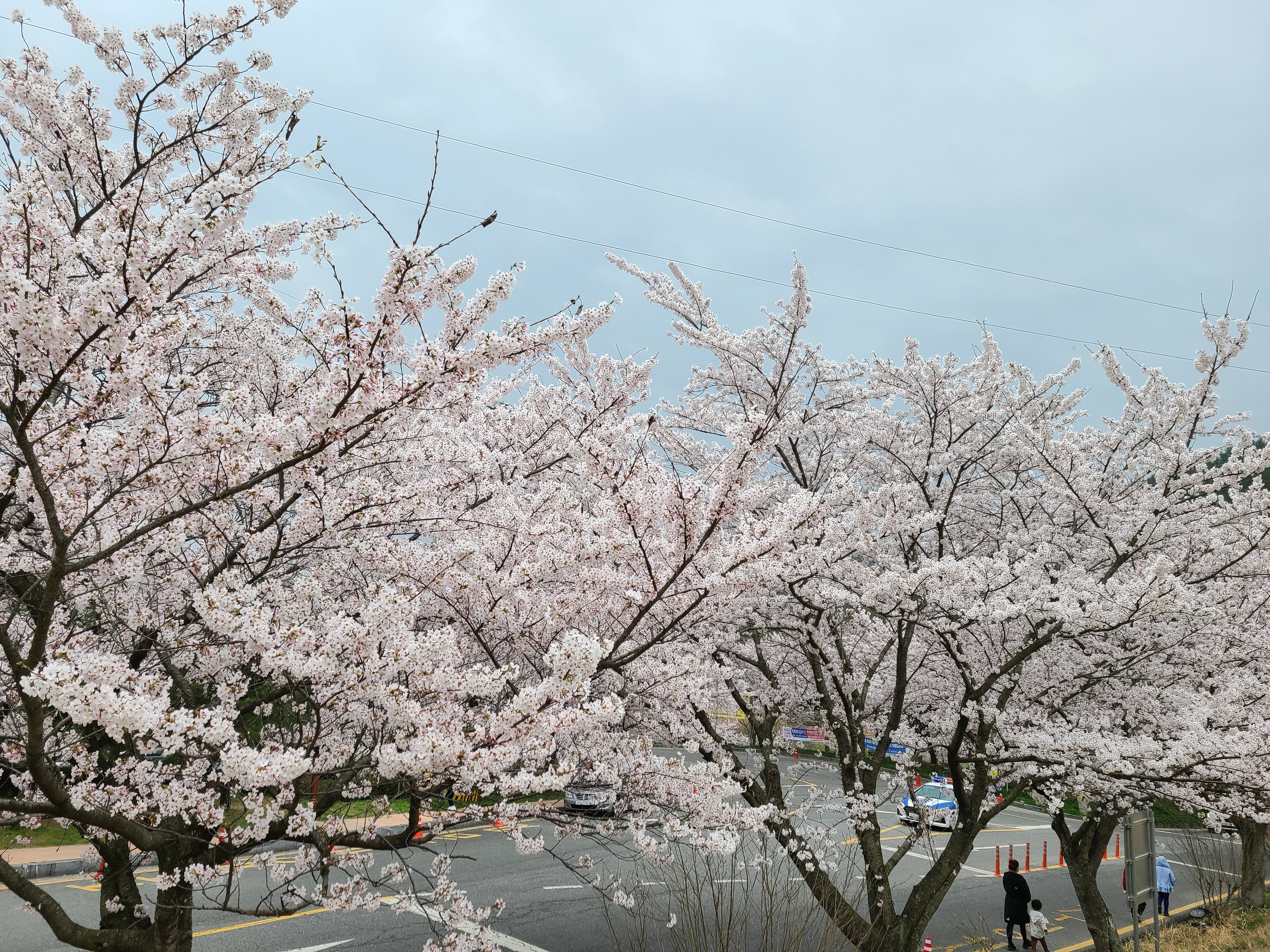 주차장 주변에 벚꽃이 활짝 만개를 했다.