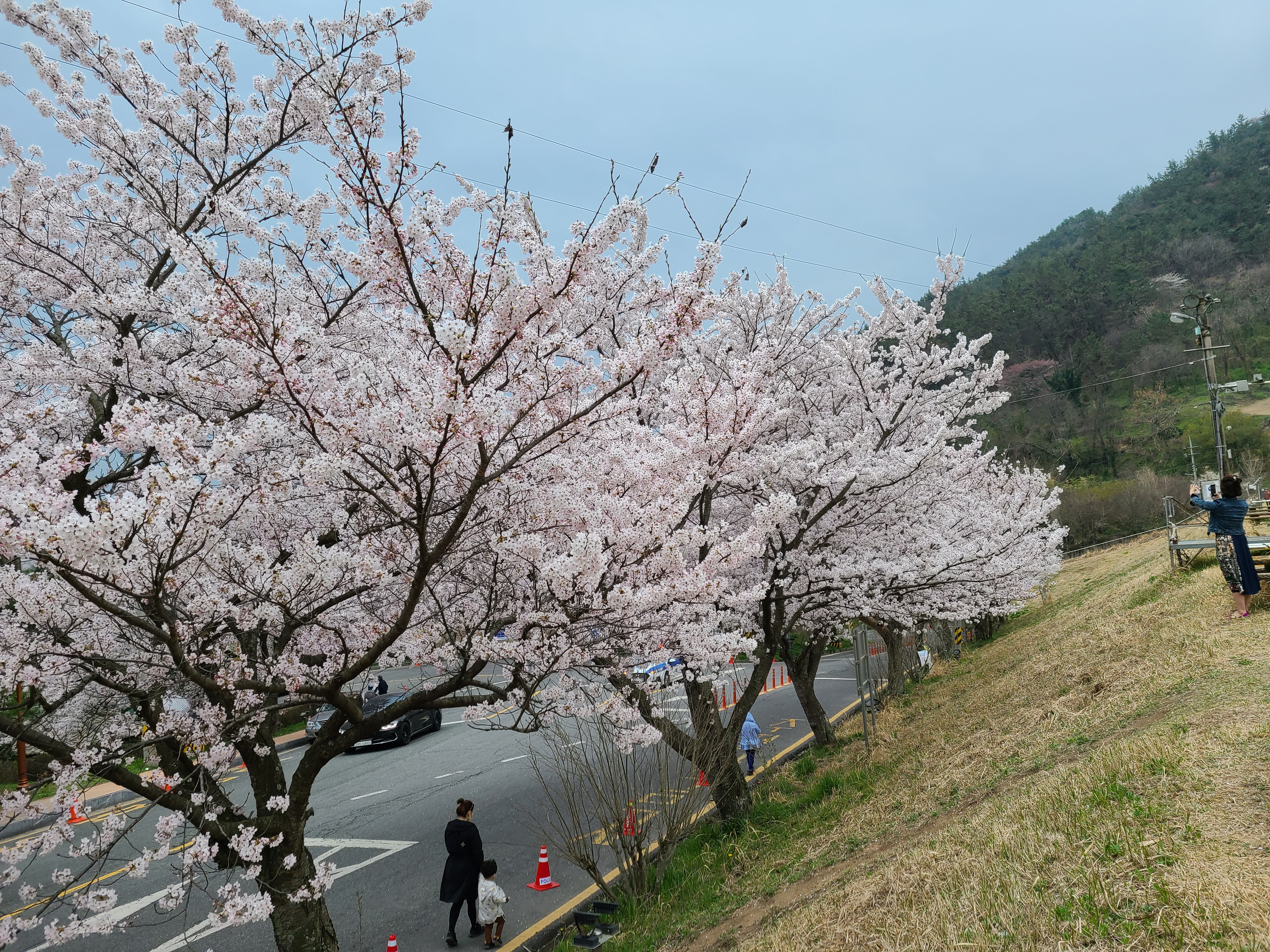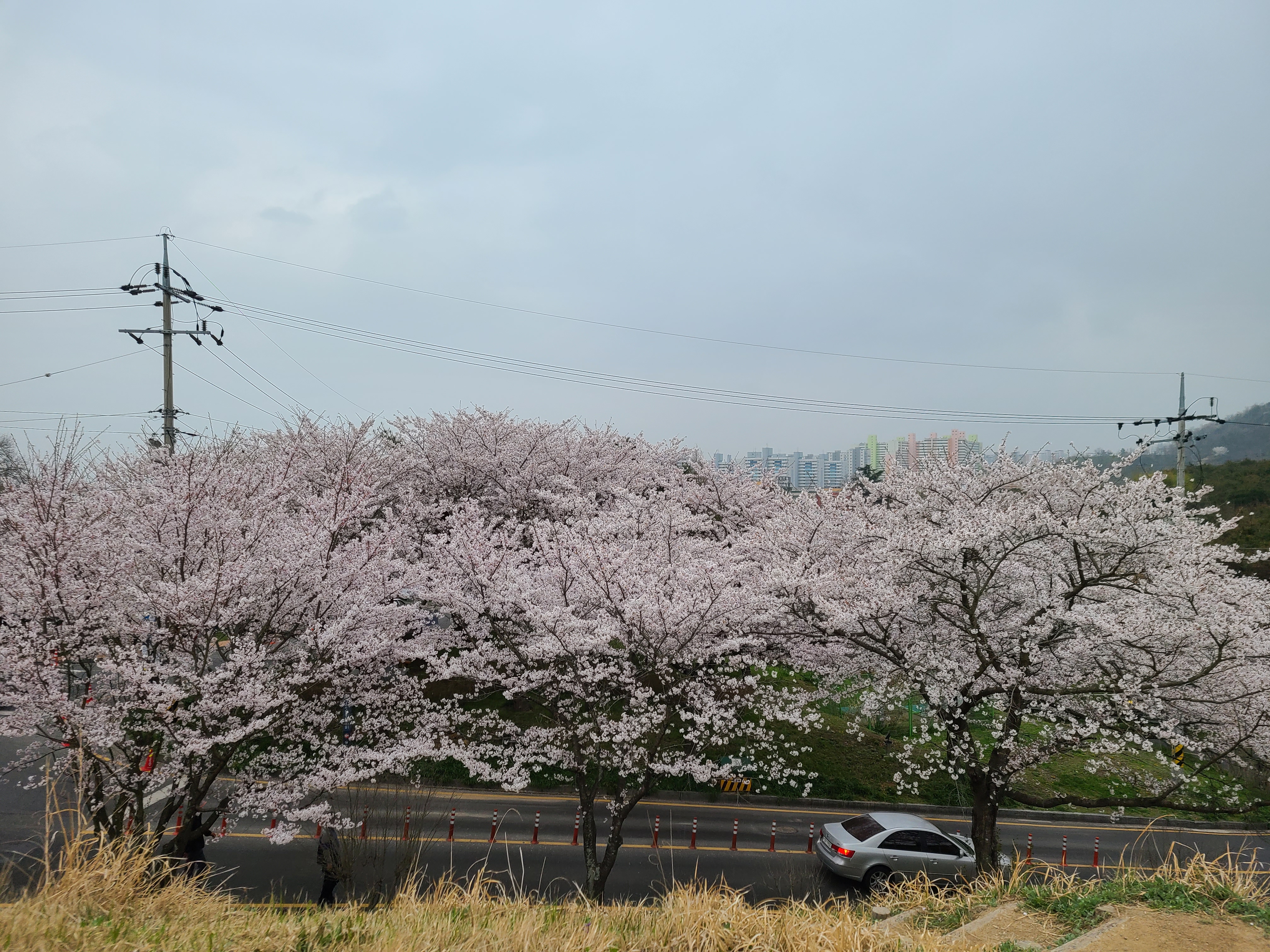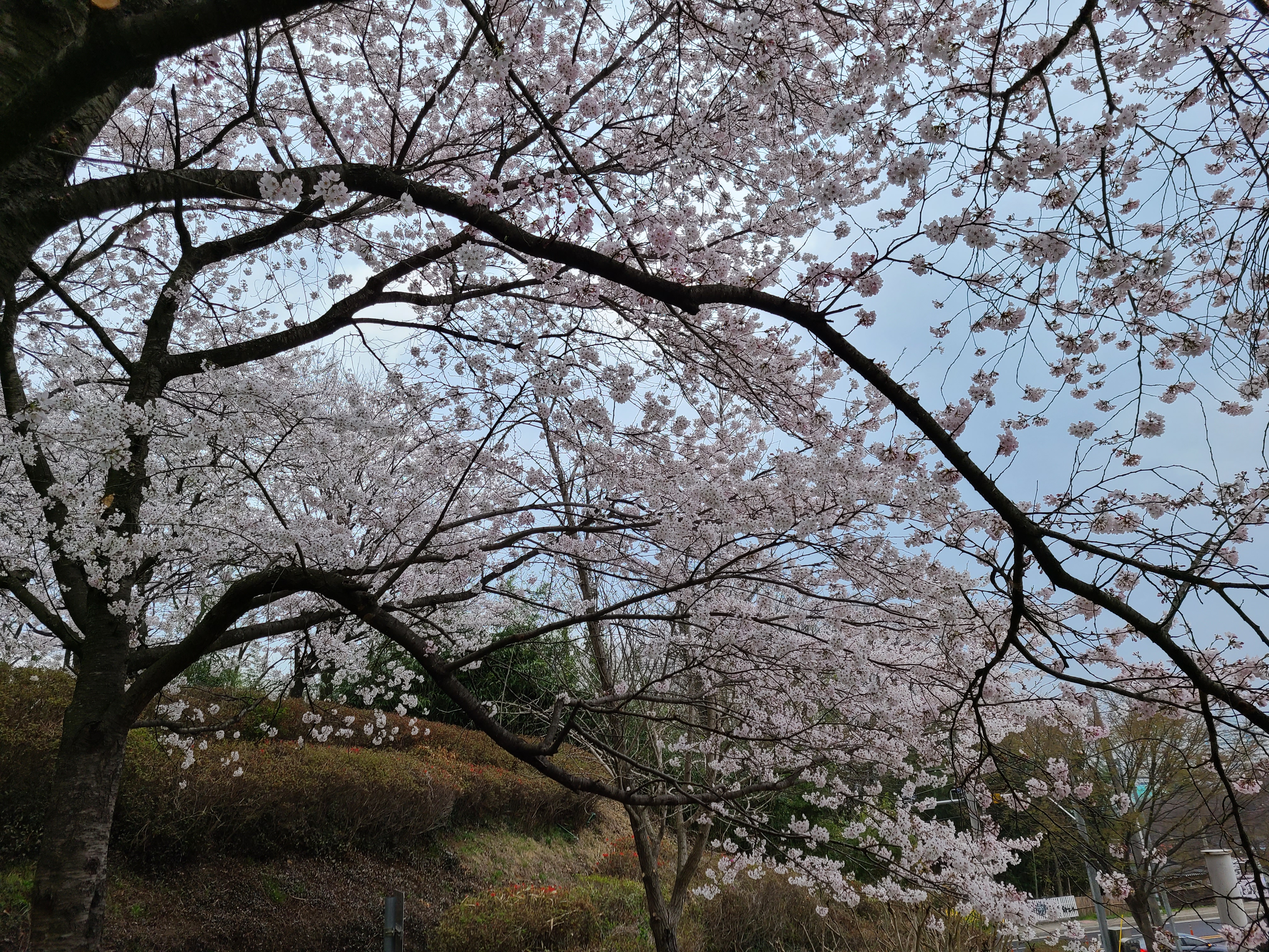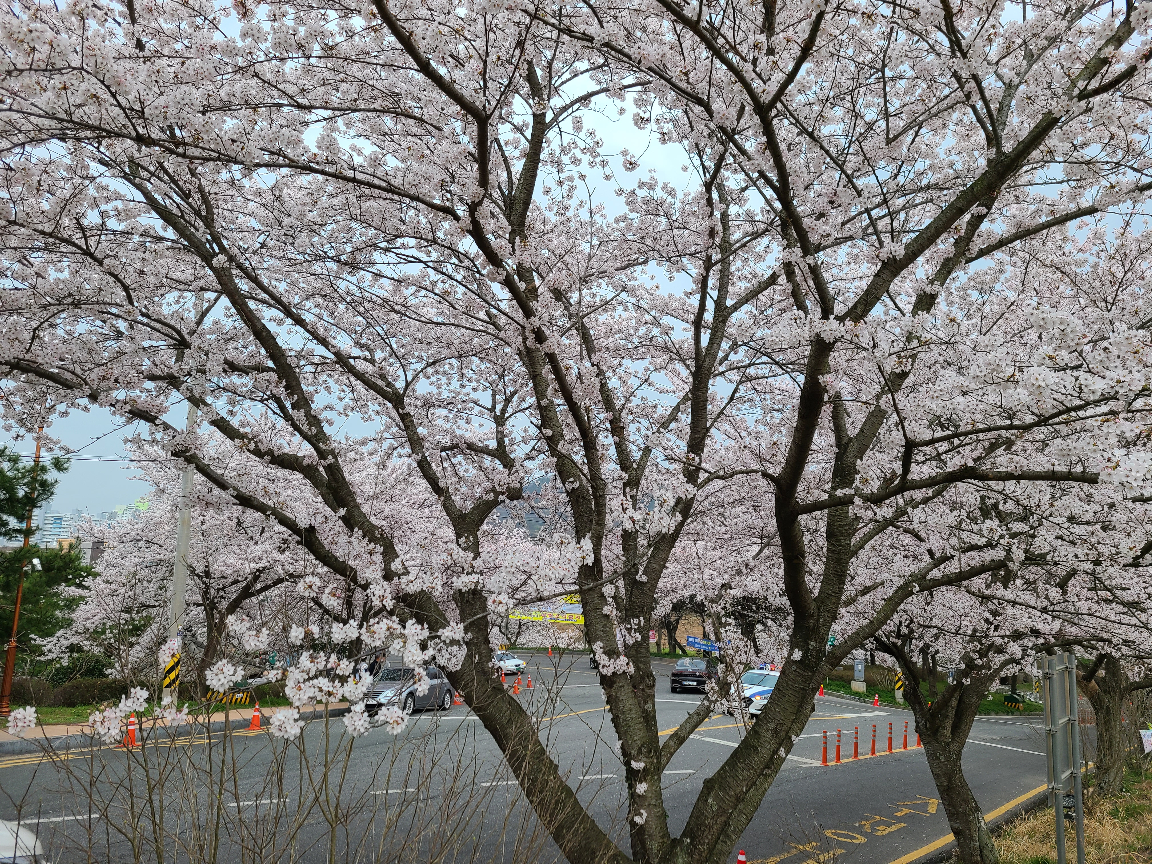 주차장 주변에 벚꽃이 활짝 만개를 했다.