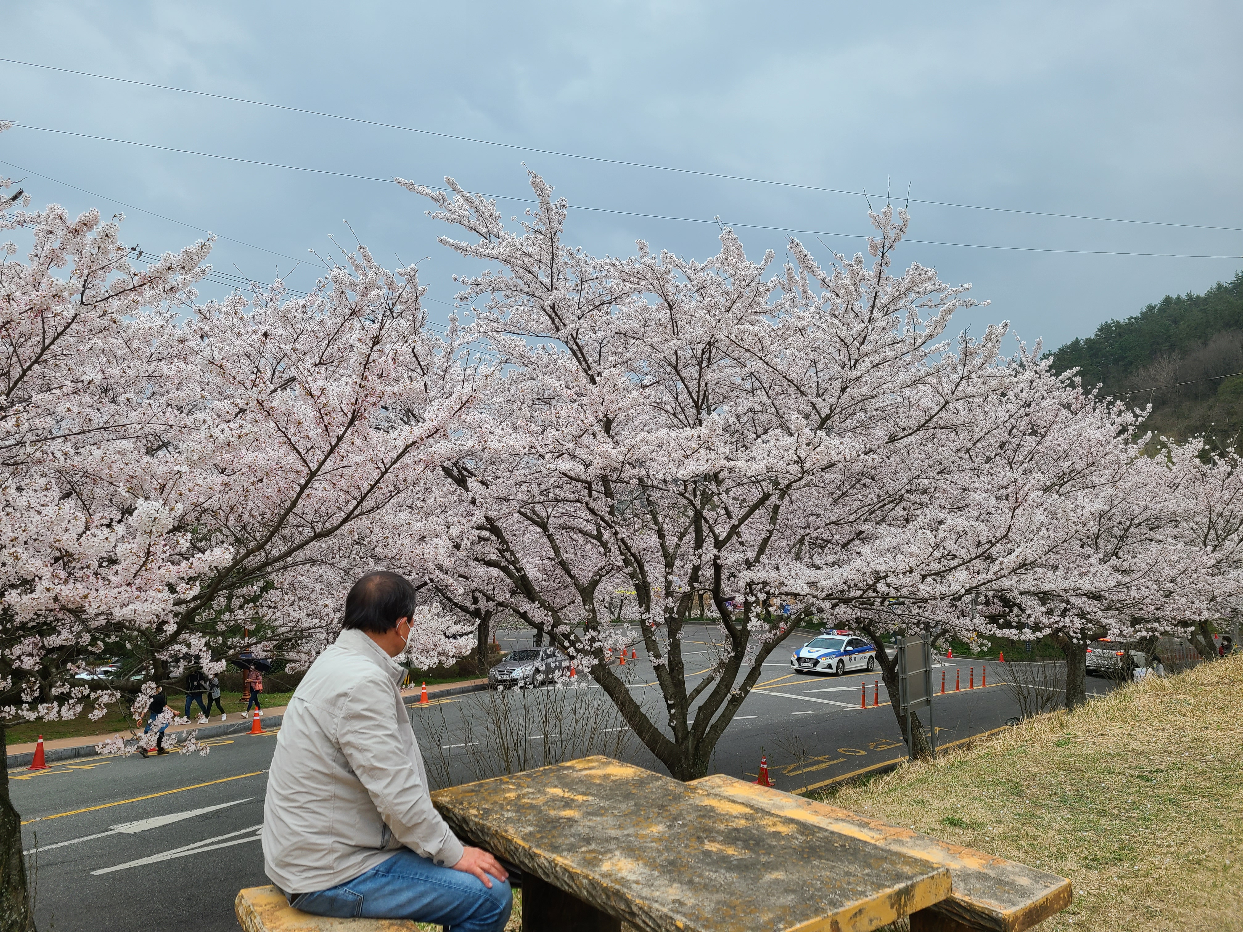 벚꽃을 오래 볼 수 있게 비가 꽃잎을 피해서 내려 줬으면 좋겠다. 그래도 오랜만에 만개한 벚꽃 아래 남편과 함께 걸었더니 너무 기분이 좋다.