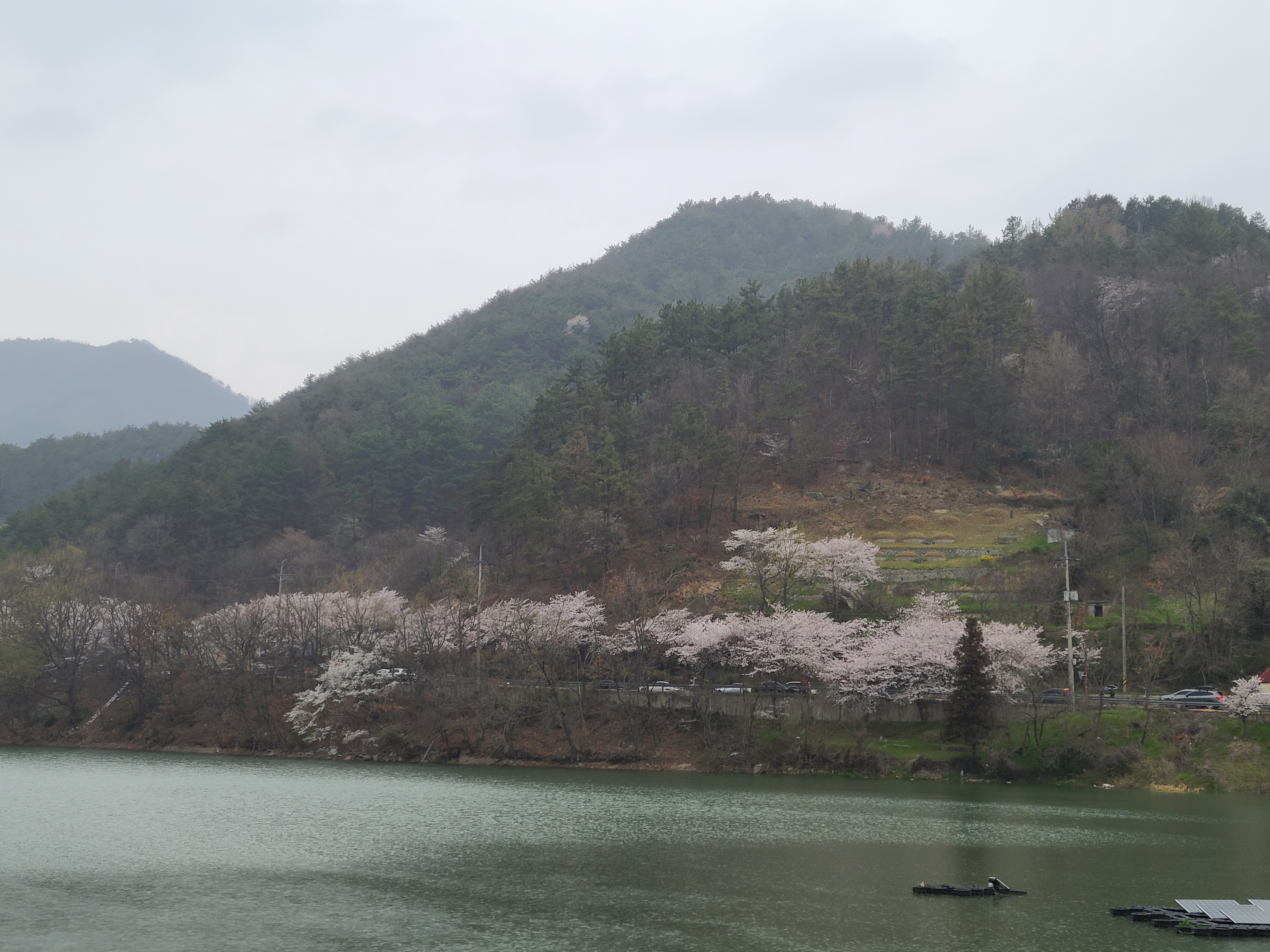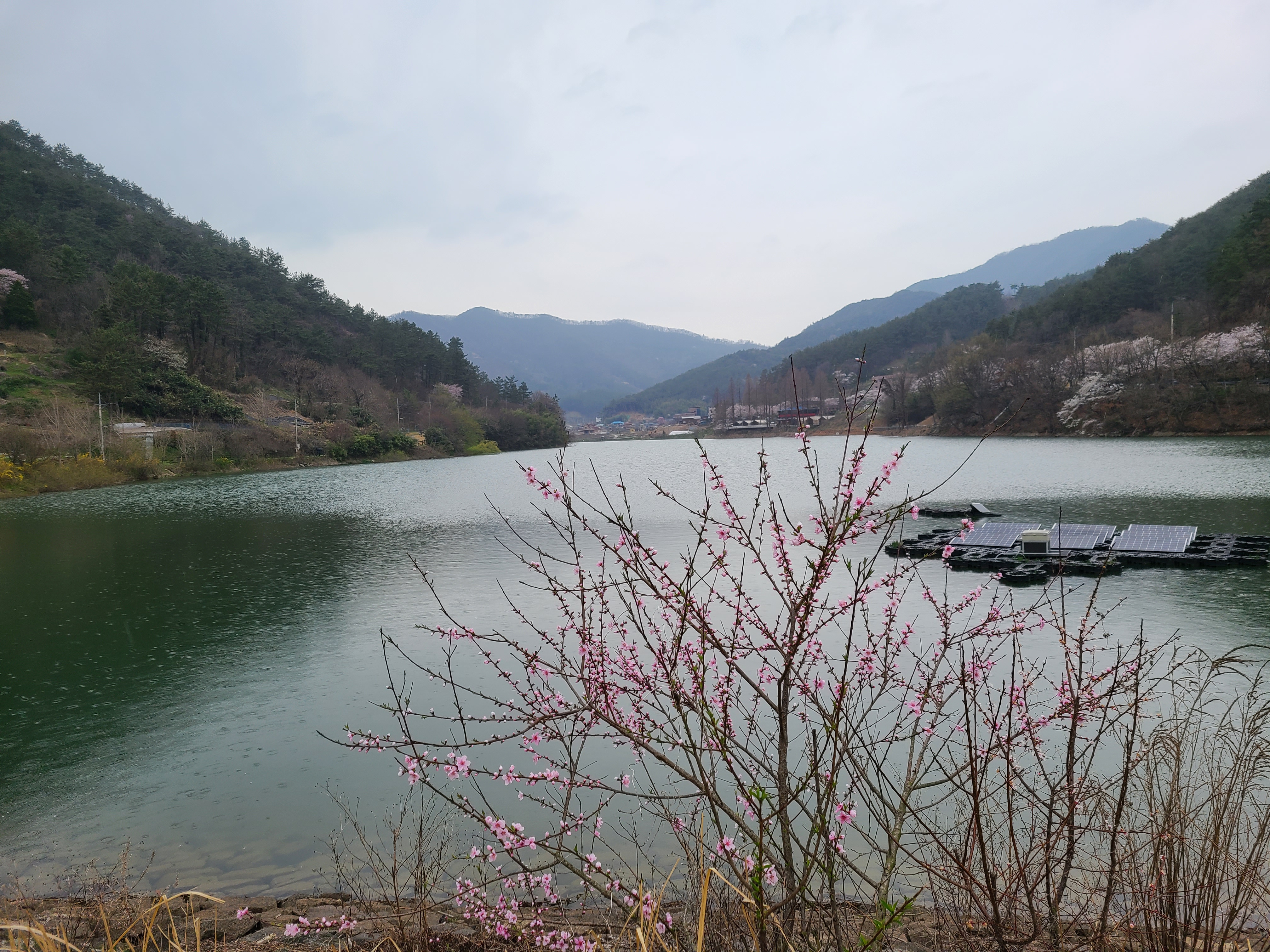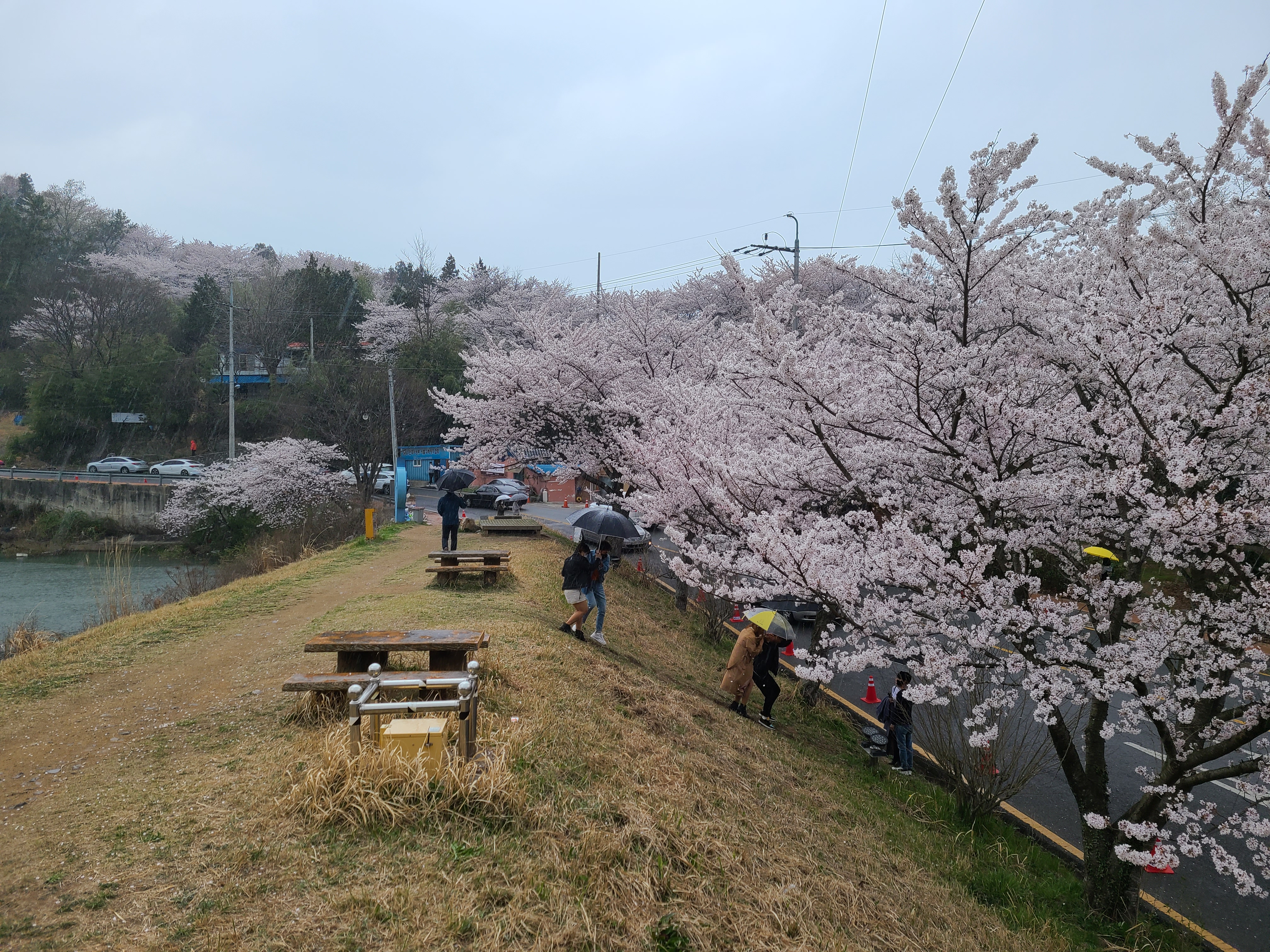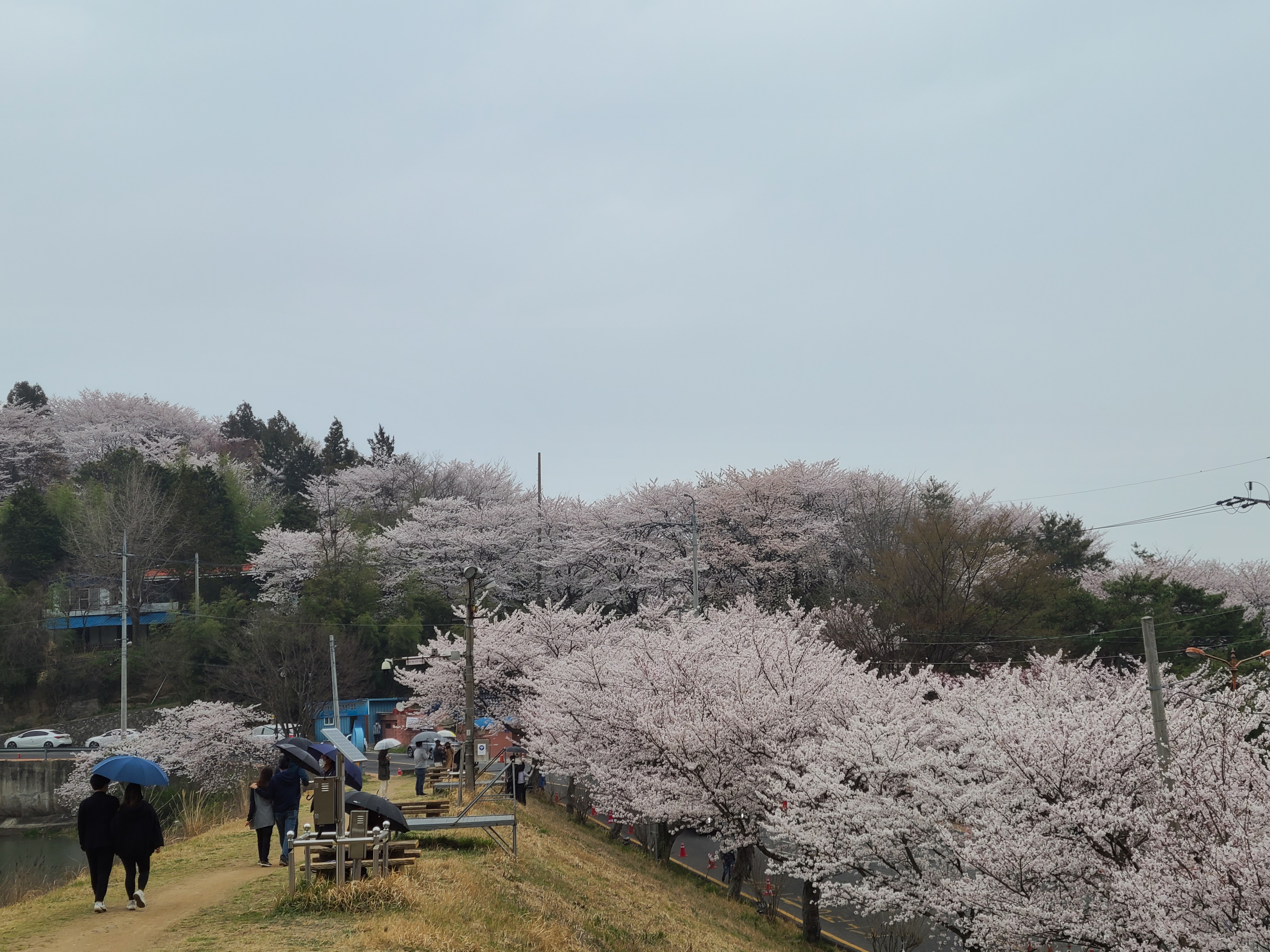 저수지 뚝 위에 우산을 쓰고서 벚꽃을 즐기는 사람들이 꽤 많았다. 한수제를 중심으로 크게 한 바퀴 돌아보아야겠다.