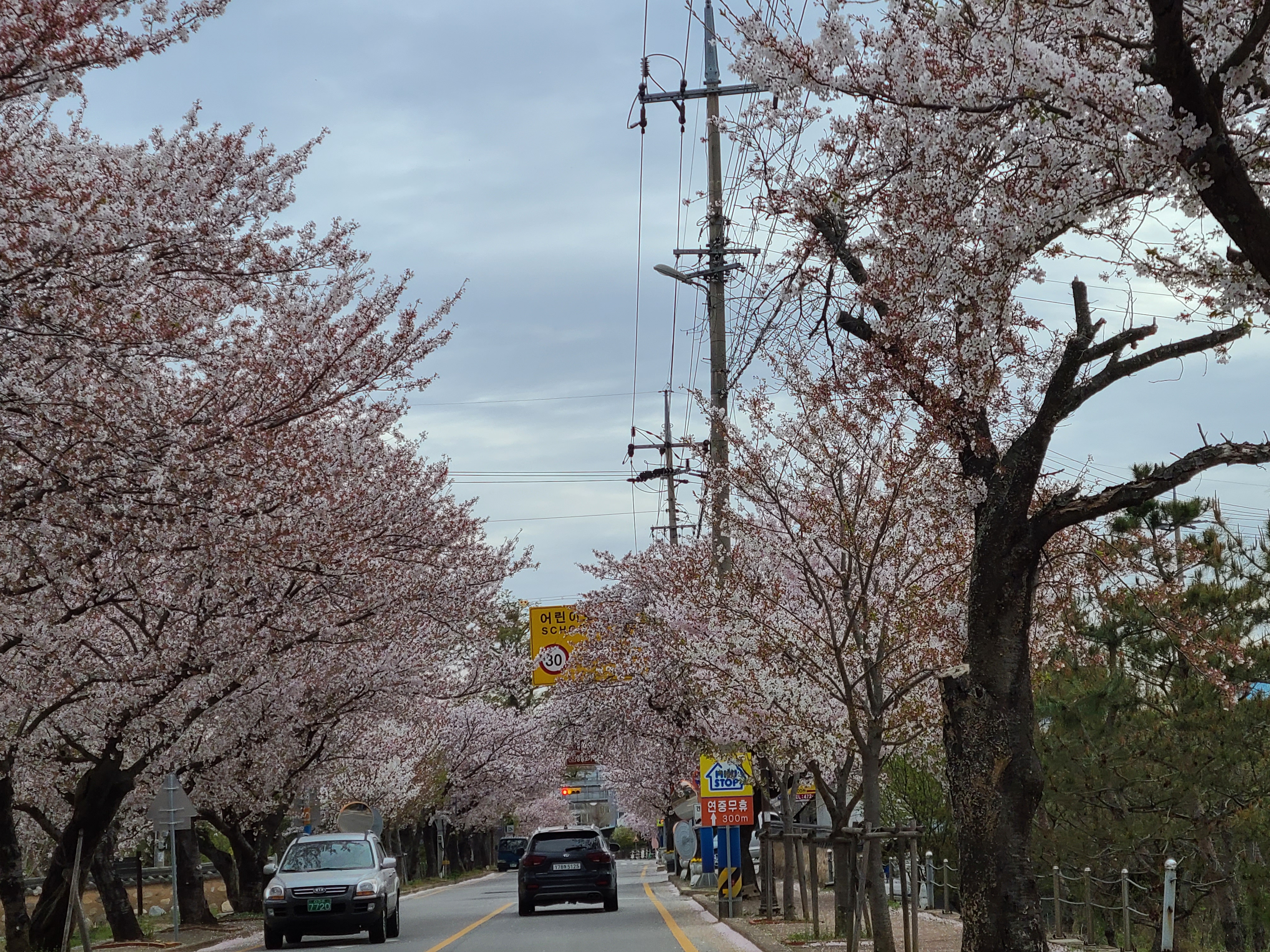영암 도기박물관을 가는 길은 영암부터 시작해서 계속 벚꽃길이였다. 이곳은 이미 벚꽃이 만개한 이후 바람에 벚꽃잎이 떨어지고 있어 도로변에 떨어진 벚꽃이 쌓이고 있었다.