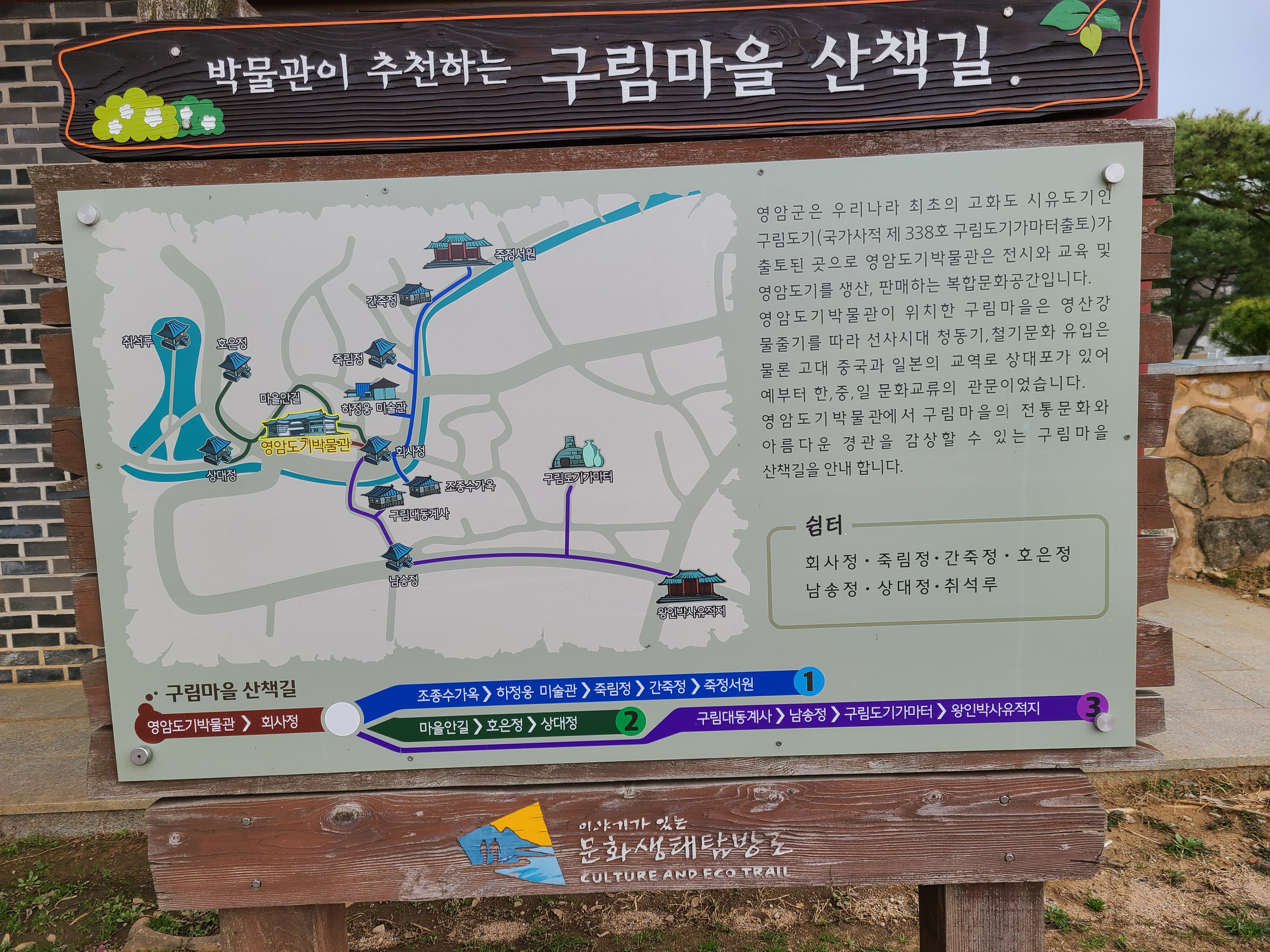 구림마을 주차장에 도착해서 영암도기박물관에 걸어가니 출입구에 '코로나 19로 인해 당분간 출입금지'라는 안내 현수막이 걸려있었다. 차로 25분을 달려왔는데 순간 당황스러웠다. 현수막에 있는 연락처로 전화를 해보니 최근 코로나 19 발생 인원이 늘어나 어제 회의 결과 폐쇄하기로 했다고 안내해줬다.