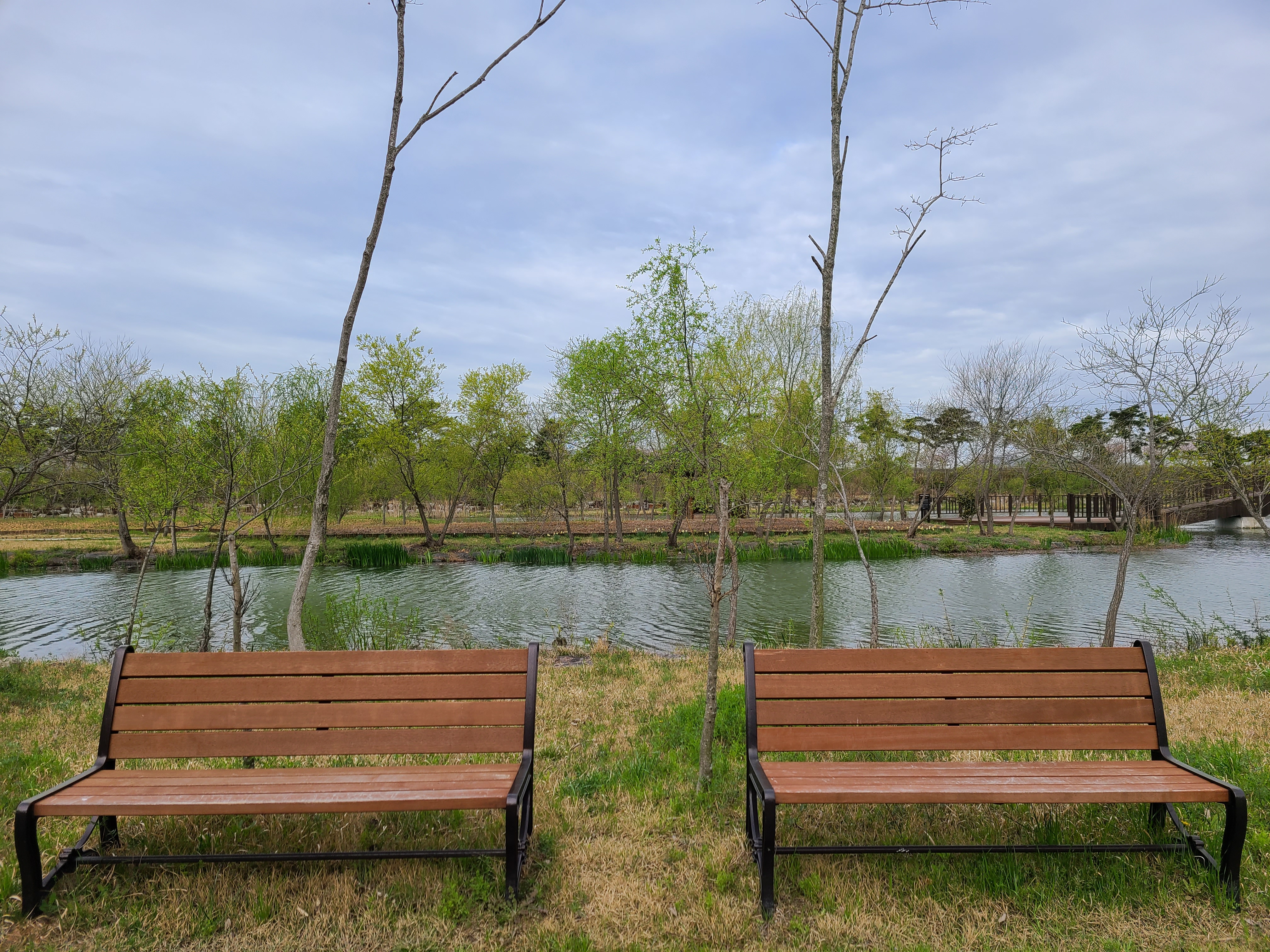 아침 이른 시간이어서 산책하는 사람은 아무도 없었고 몰려드는 잉어들이 입을 크게 벌리는 모습이 안쓰러워 잉어먹이 자판기에서 먹이를 두 번 사서 뿌려주었다.