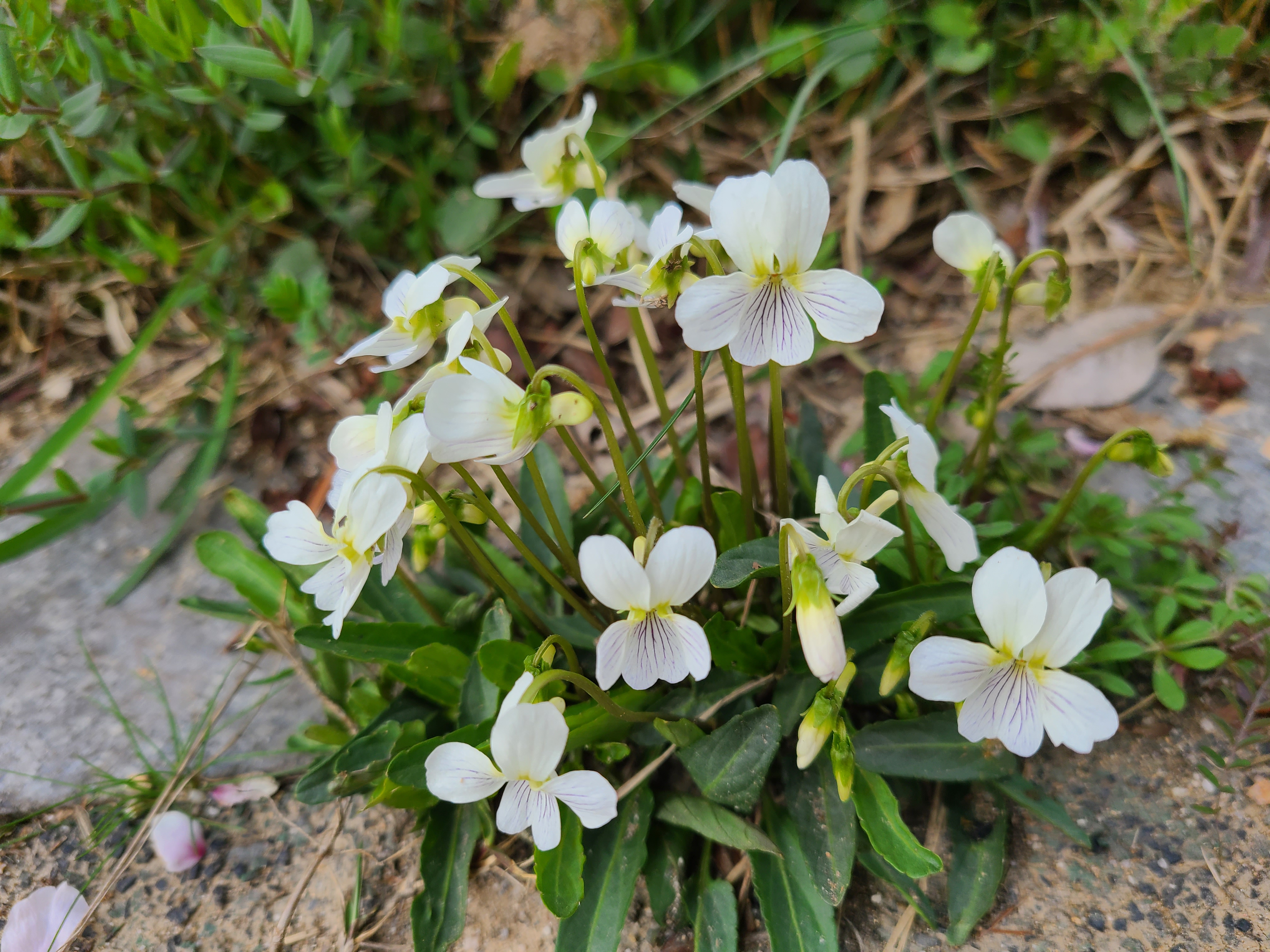 돌틈사이로 피어난 하얀 제비꽃이 봄이 왔음을 알린다.