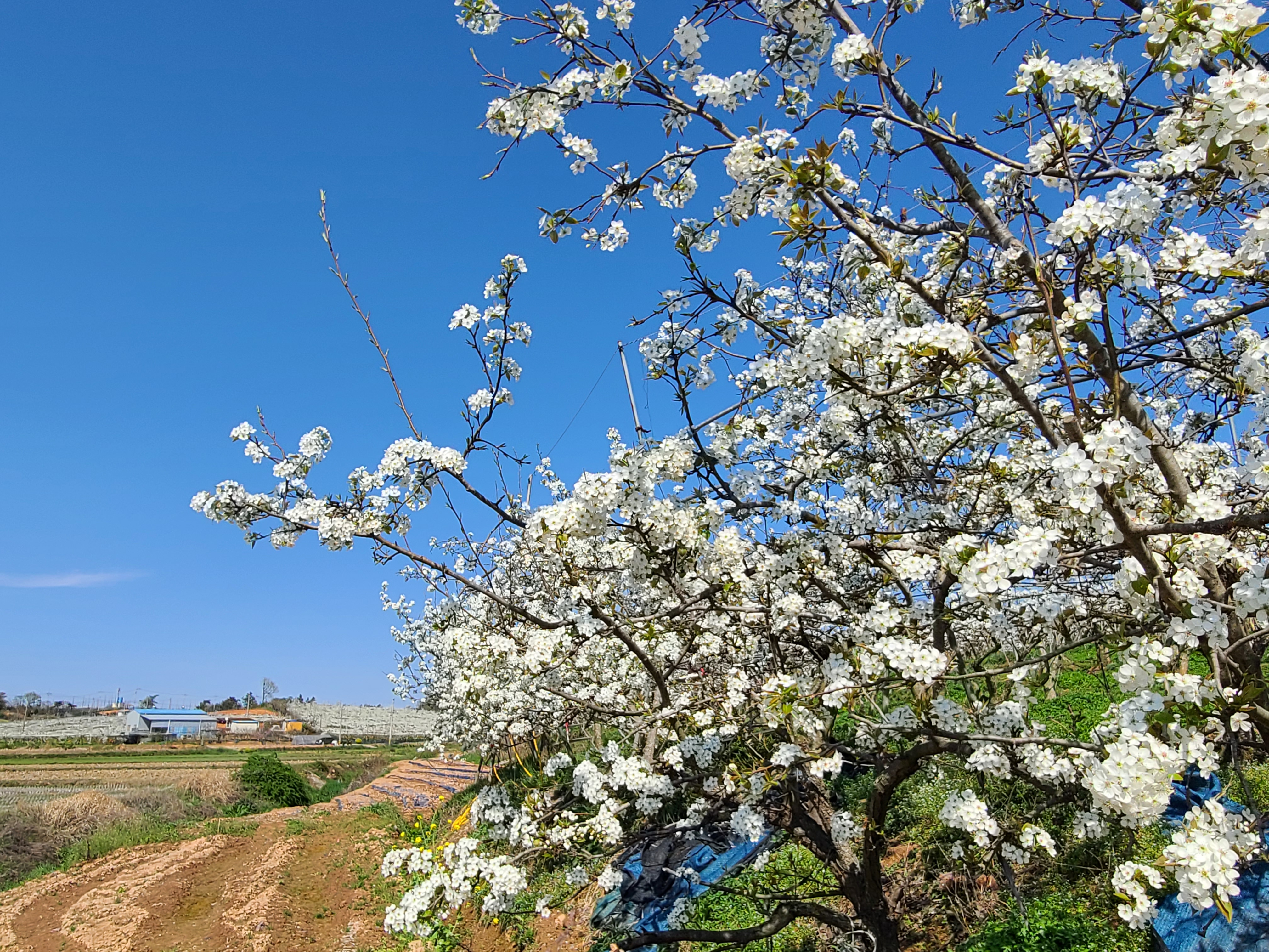 머물고 있는 곳 주변에는 배 과수원이 많이 있다. 예전부터 나주배가 유명하다는 소리를 듣기는 했지만 요즘 배꽃이 활짝 피니 더 실감하게 된다.
