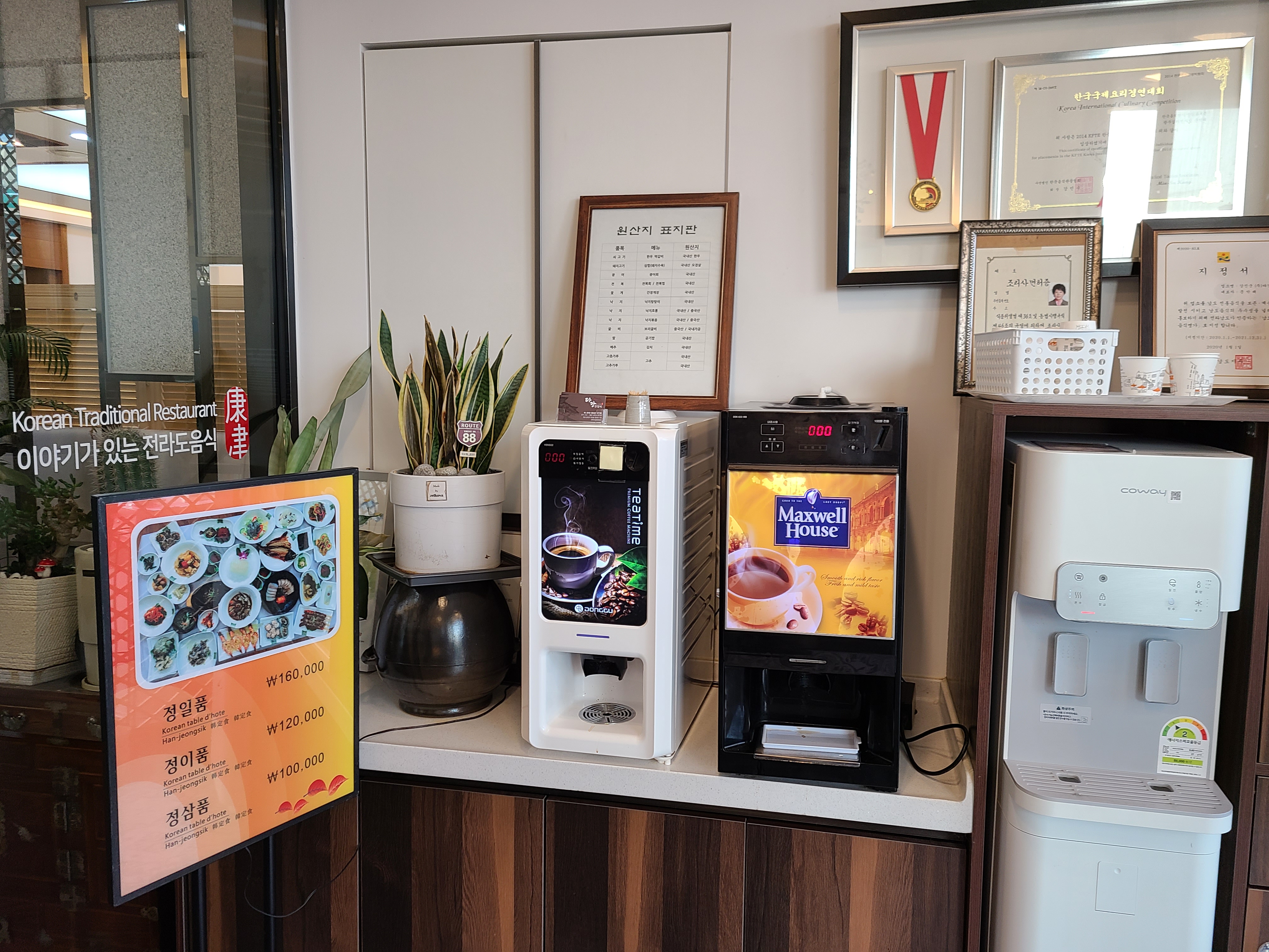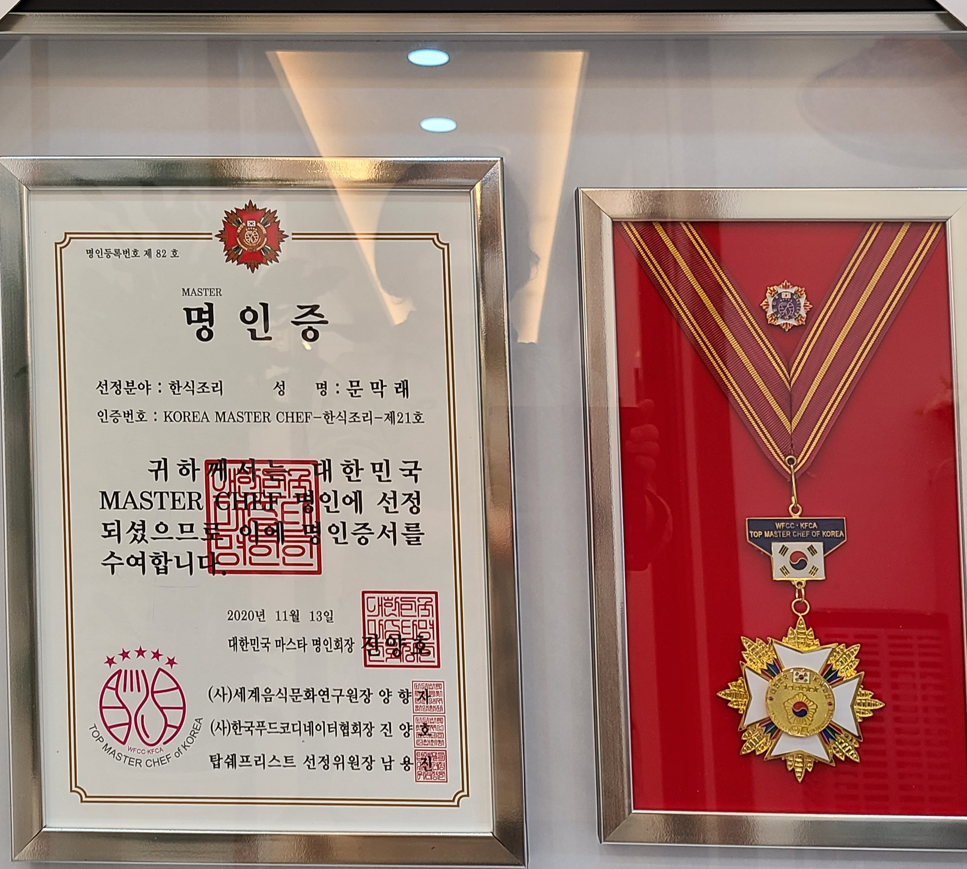 다강 한정식의 문막례 사장님이 한식조리 부분에 명인증을 수여받은 것을 걸어 놓았는데 , 더욱 음식 맛에 대해 기대가 되었다.