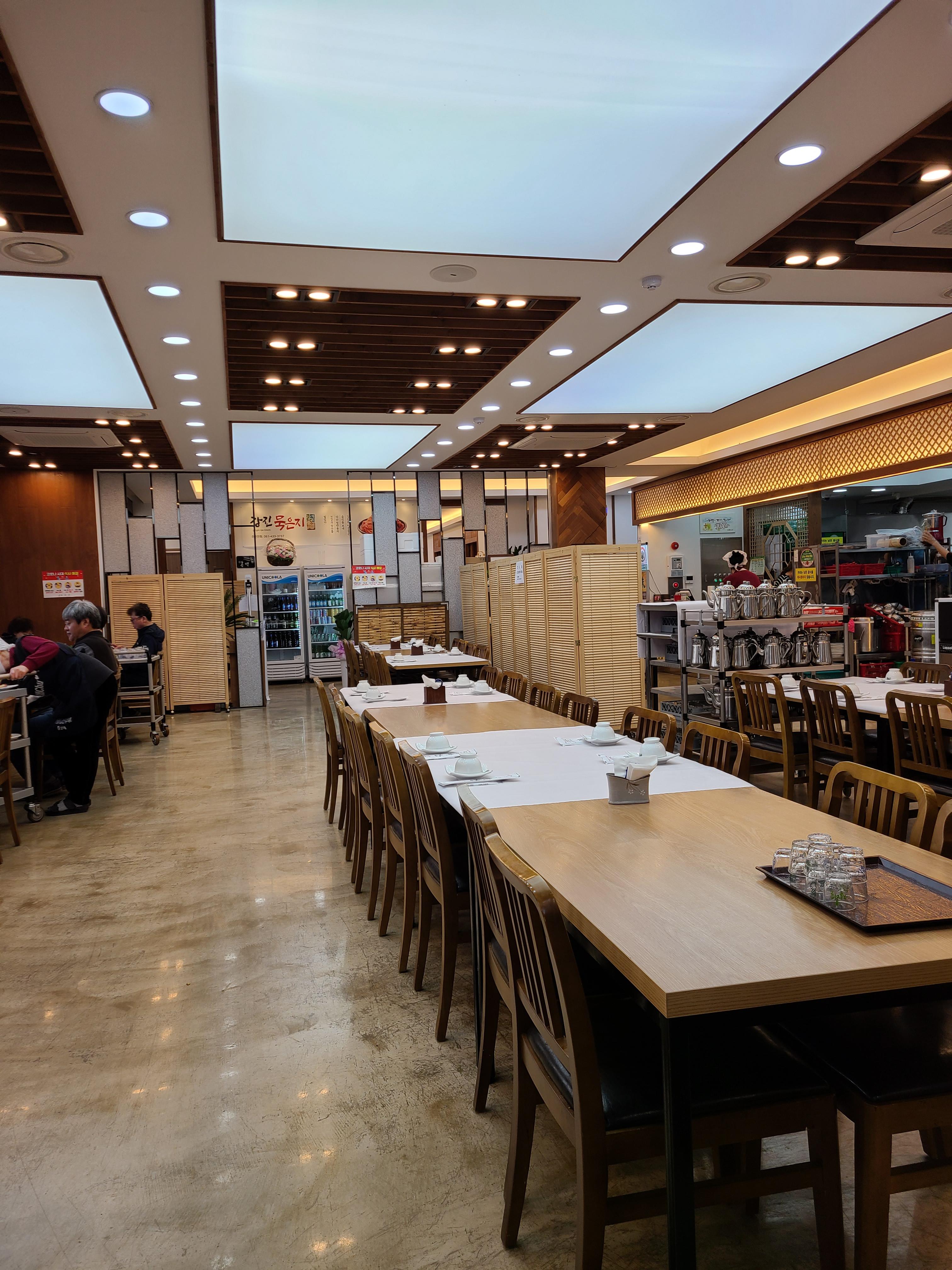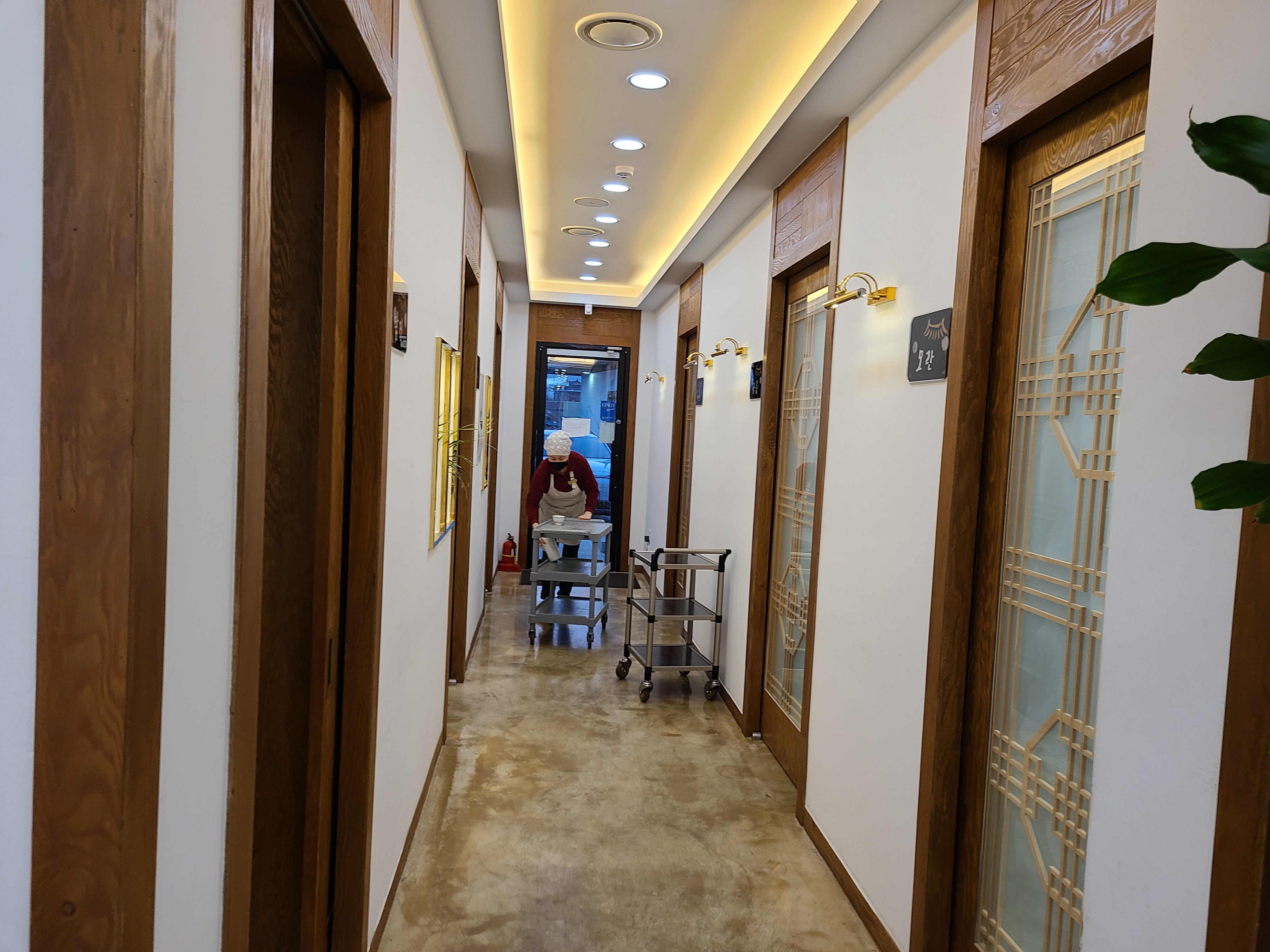 우리가 안내된 방은 테이블이 두 개가 있지만 한 테이블에만 세팅이 되어 있었다. 오픈된 공간에도 식탁을 거리두기로 한 테이블씩 비워놓은 것을 볼 수 있다. 거리두기를 철저히 하고 있어 마음 편하게 음식을 먹을 수 있을 것 같다.
