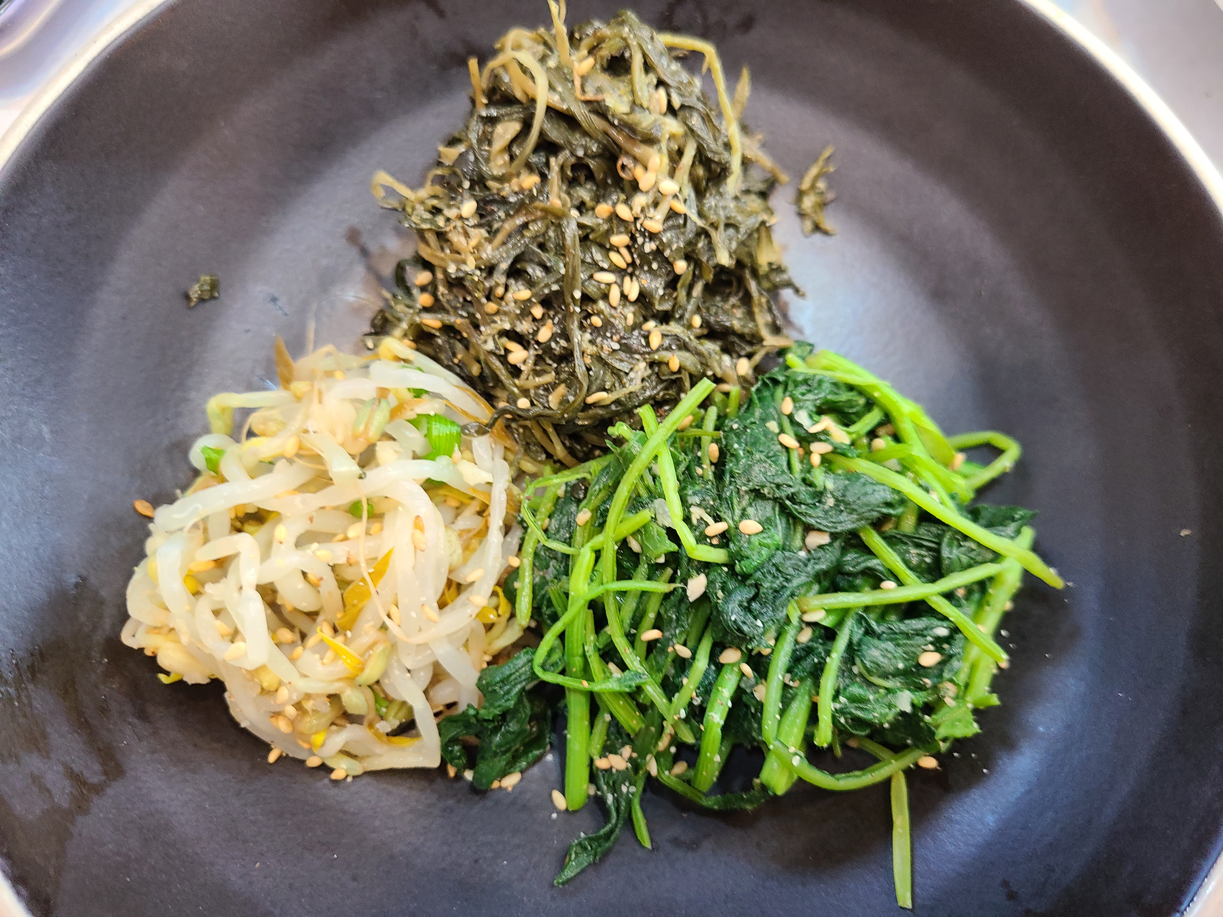 나물무침 하나하나가 적당히 잘 삶아졌고 간도 적당하다.