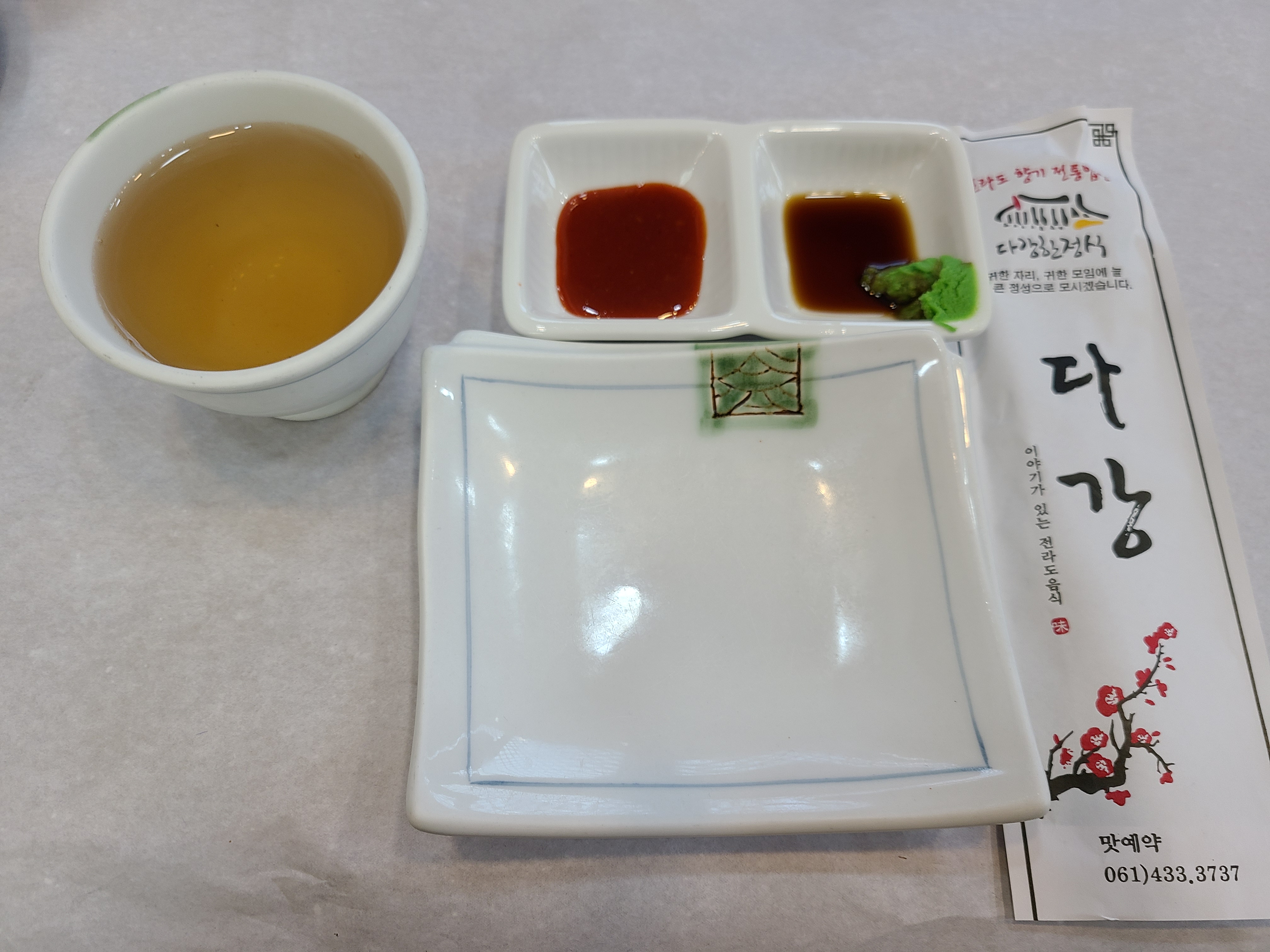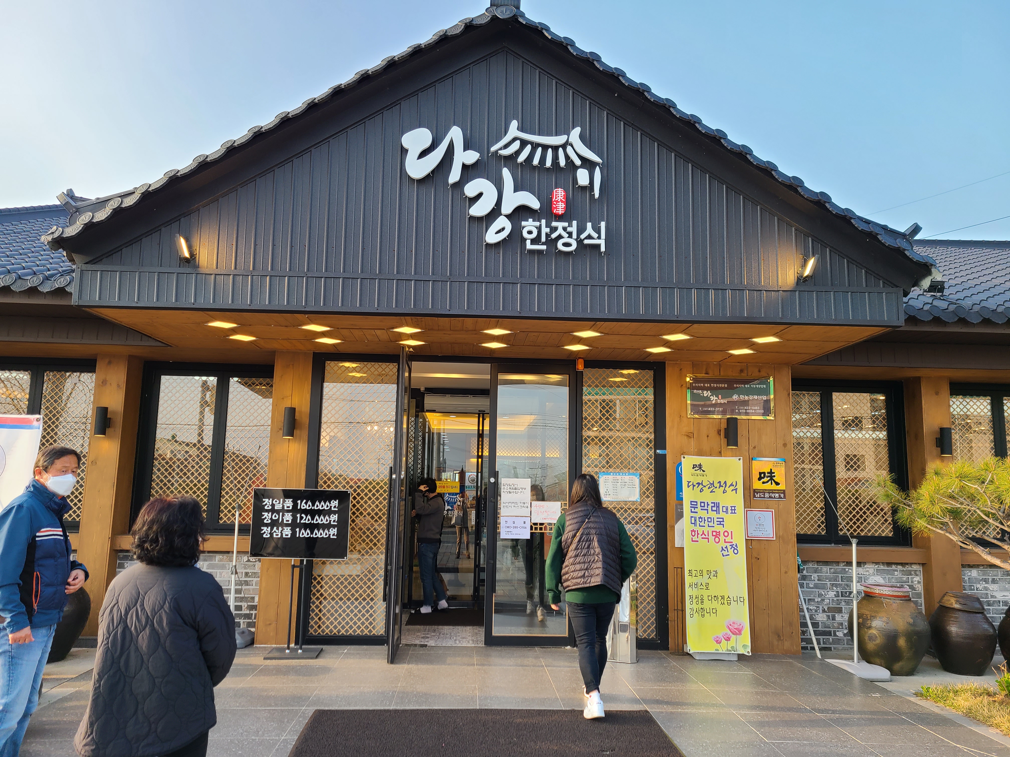 우리는 너무 맛있게 잘 먹어서 후식이 나오는 것도 기다리지 못하고 일어섰는데 나오는 우리에게 수정과를 내어 주었다. 수정과의 향이 입안에 남은 음식 냄새를 개운하게 해주는 것 같아 좋았다. 그동안 여러 번 강진을 방문했지만 이번에 다강 한정식에서 먹은 한정식이 가장 맛있었다. 다음에 다른 가족들하고도 이곳을 찾아와야 할 것 같다.