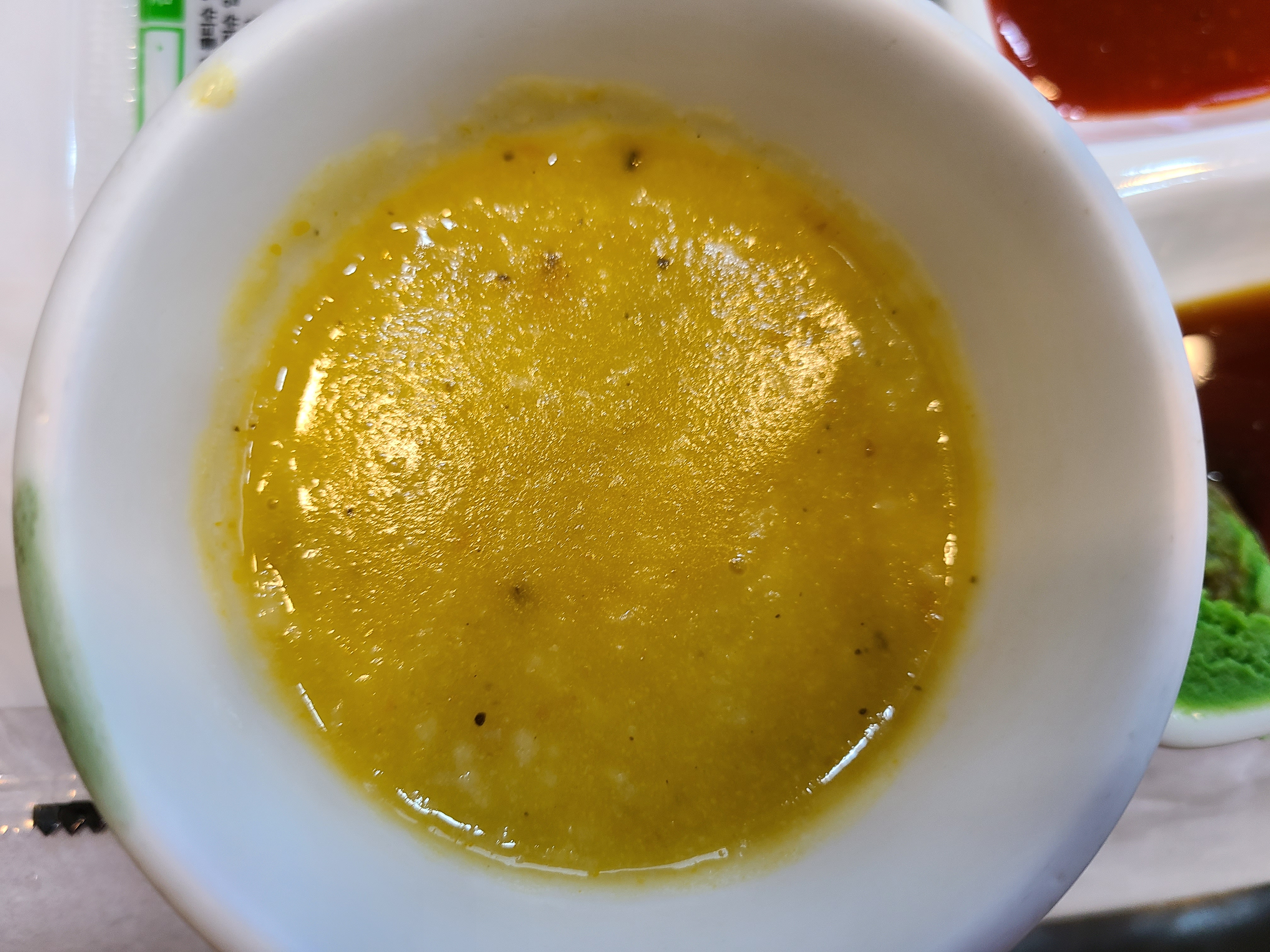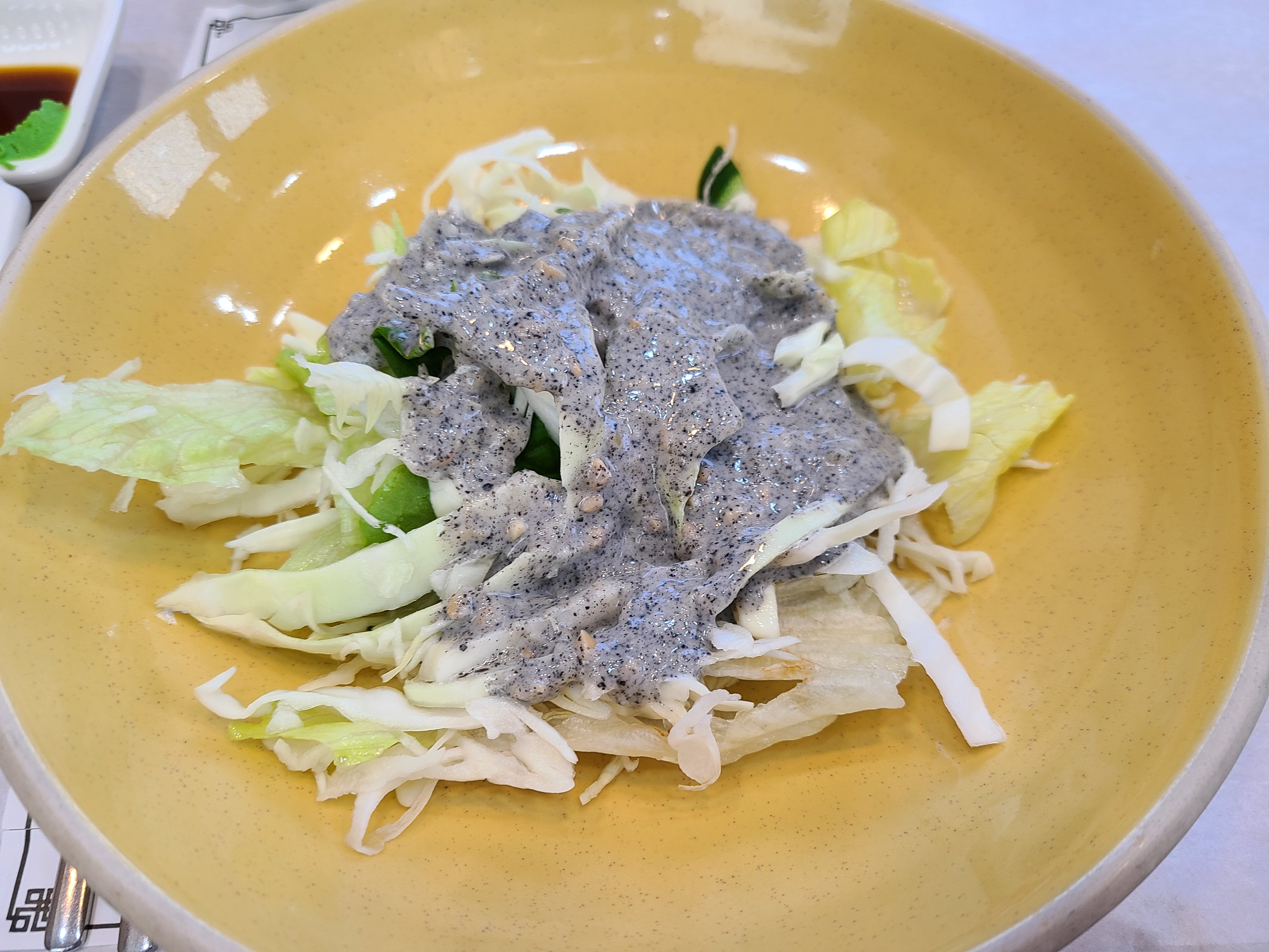 양배추와 양상추에 들깨와 견과류를 마요네즈에 믹스한 소스를 뿌려 신선하면서도 고소했다.