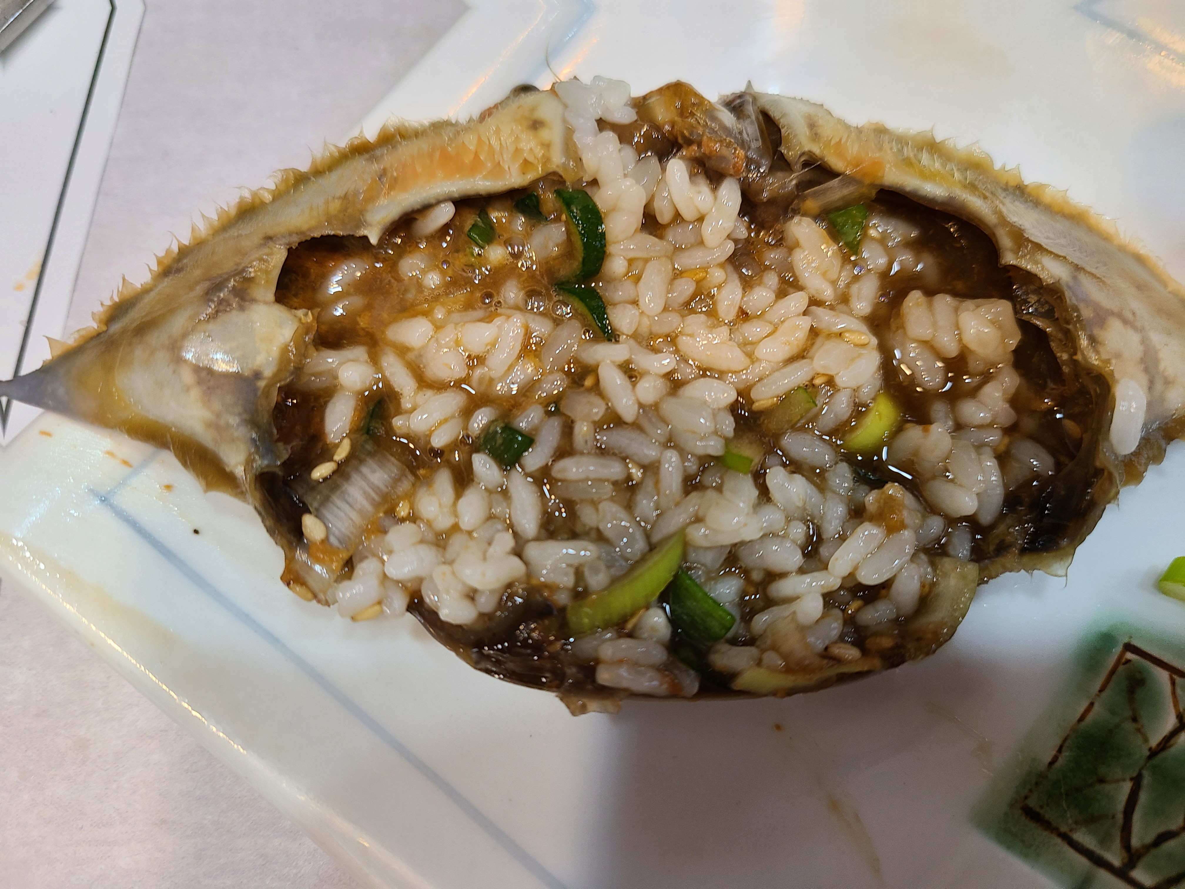 배가 불렀지만 게딱지는 포기 할수가 없어 밥을 넣고 비빈 후 한 숟가락씩 먹어 보았는데 너무 맛있었다.
