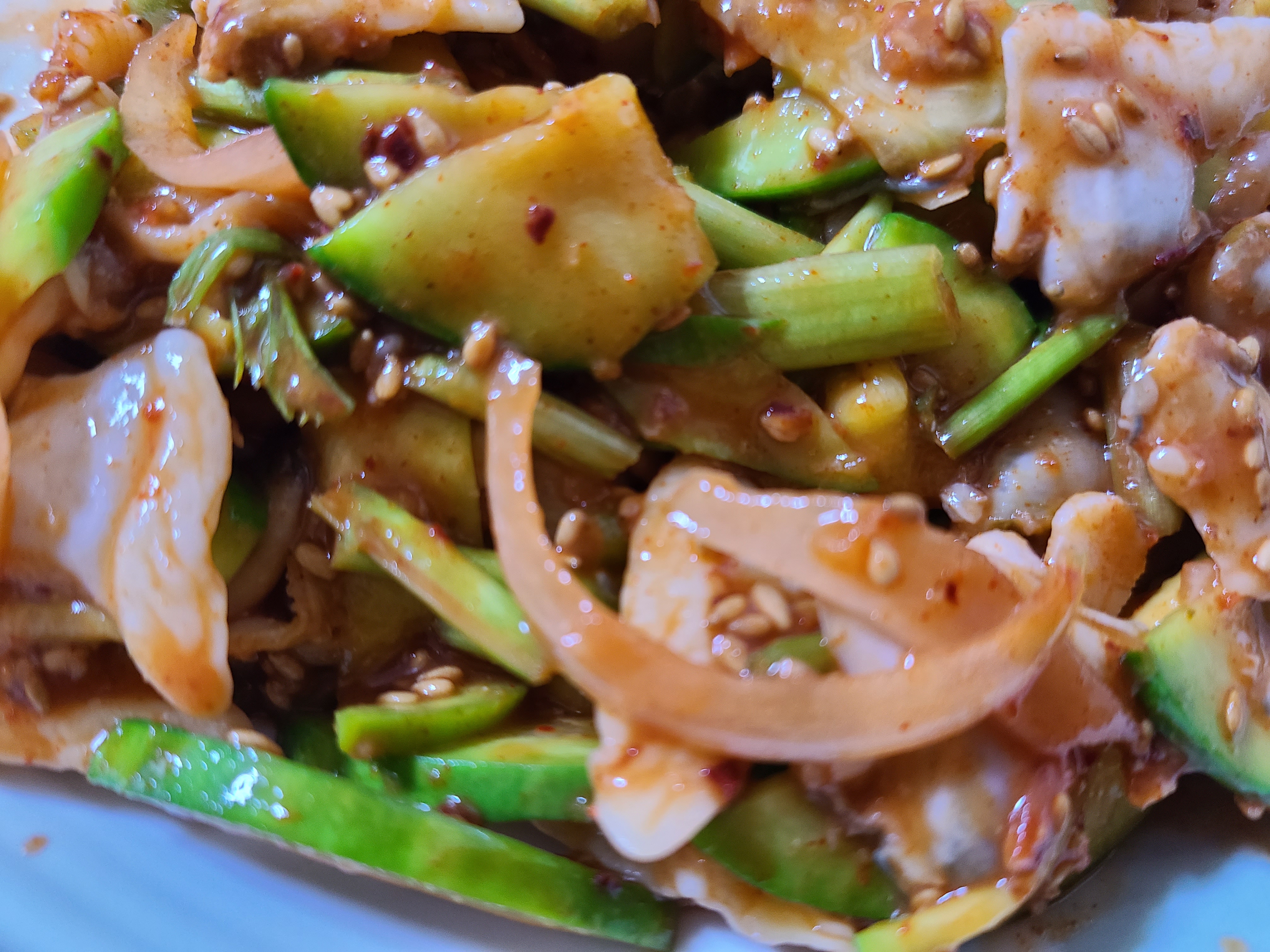 바지락 회무침의 냄새부터가 너무 맛있다. 바지락 회무침에는 호박과 미나리가 들어 있었다.