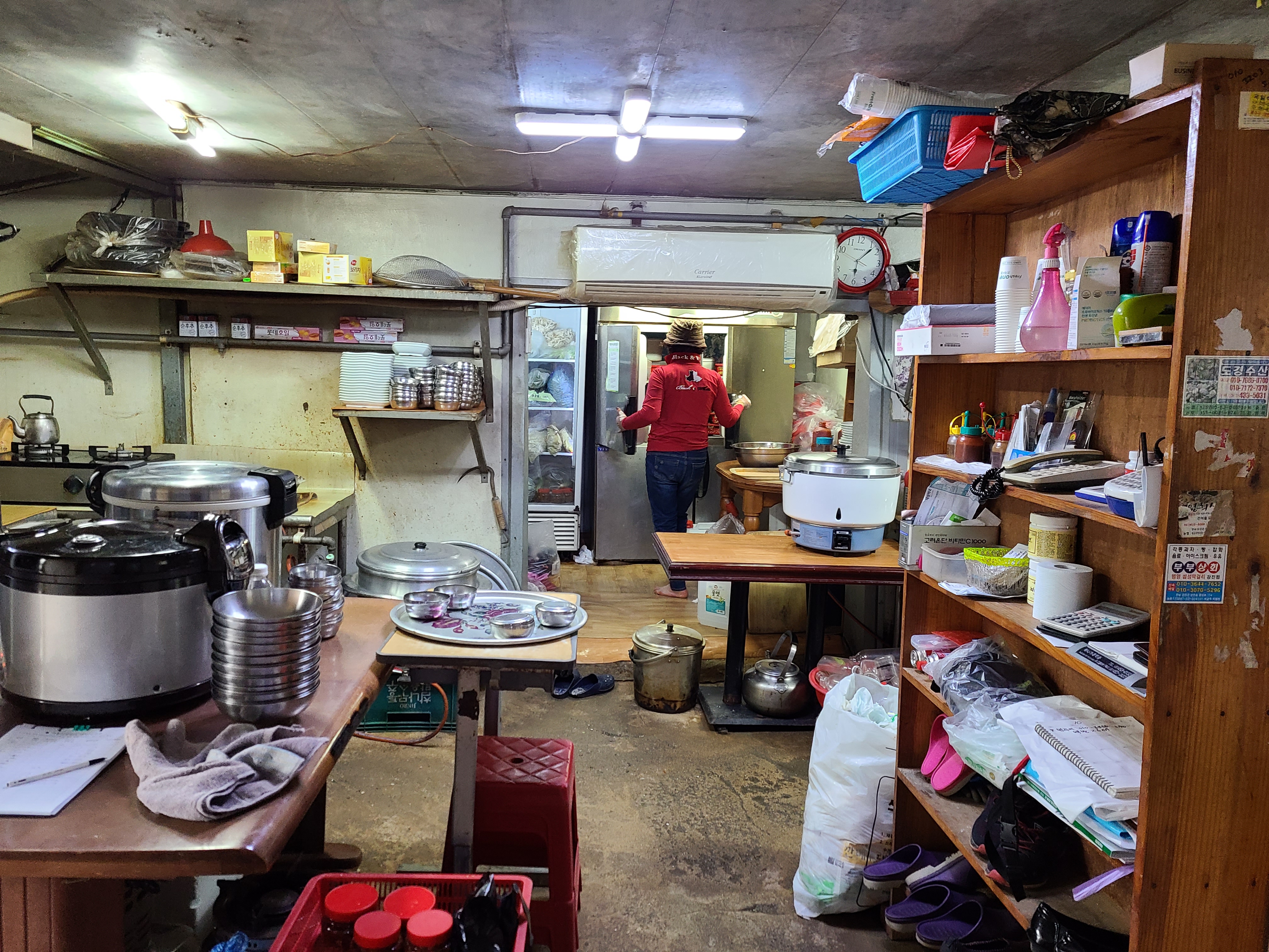 청자 식당에 도착하니 점심시간이 지나서인지 문이 잠겨있었다. 바지락 회무침이 먹고 싶었던 나는 식당 간판에 있는 전화번호를 보고 전화를 걸었다. 점심시간이 지나 산책을 나가셨던 사장님은 우리가 멀리서 왔는데 바지락 회무침을 포장해 가고 싶다는 말에 산책길에서 돌아와 바지락 회무침을 포장해 주셨다.