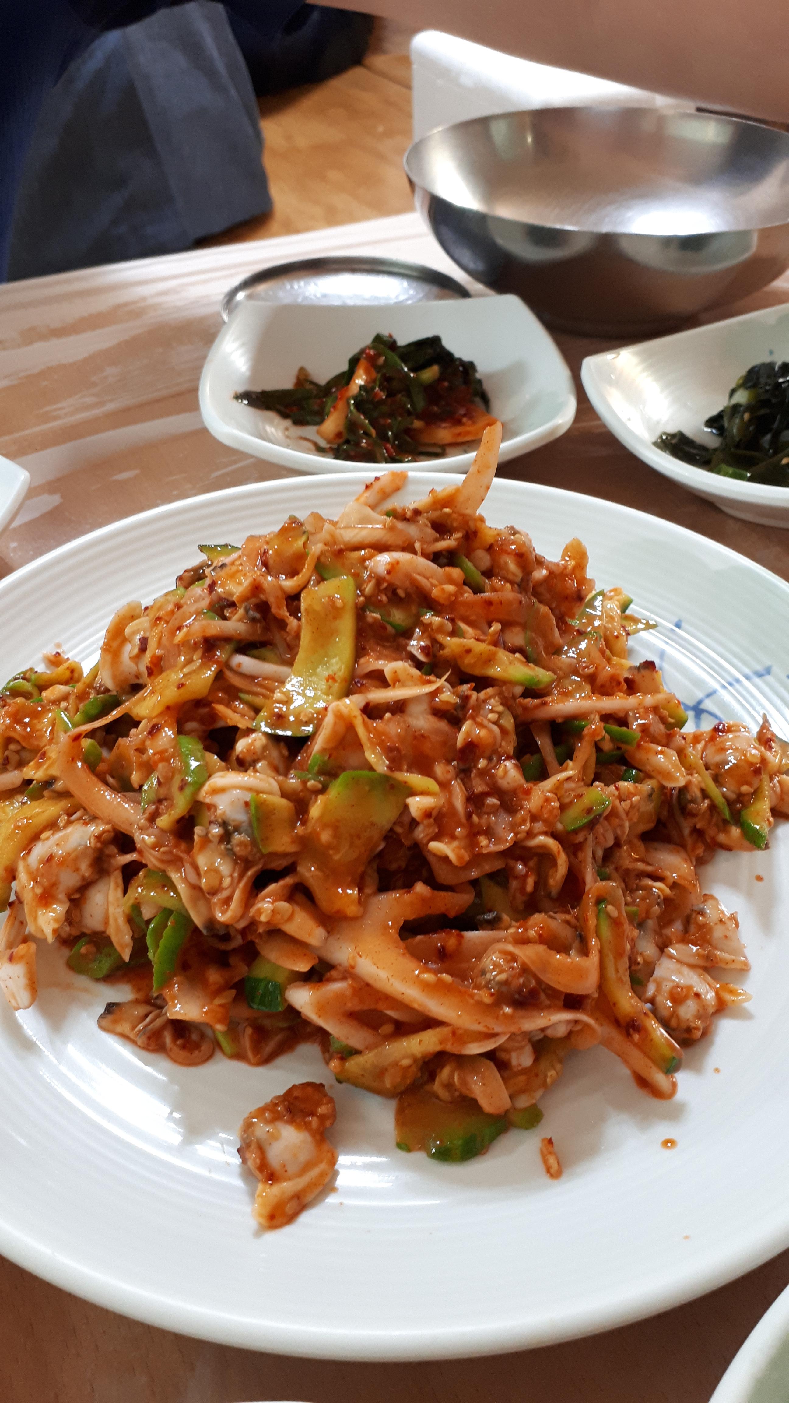 음식을 주문하고 먹는데 20분밖에 걸리지 않았다. 우리는 바지락 회무침을 다 먹고 나서야 천천히 맛을 음미하며 먹을걸 그랬다고 후회를 했다. '맛있어'라는 말을 수없이 반복하며 먹은 친구도 청자 식당 바지락 회무침 마니아가 될듯하다.
