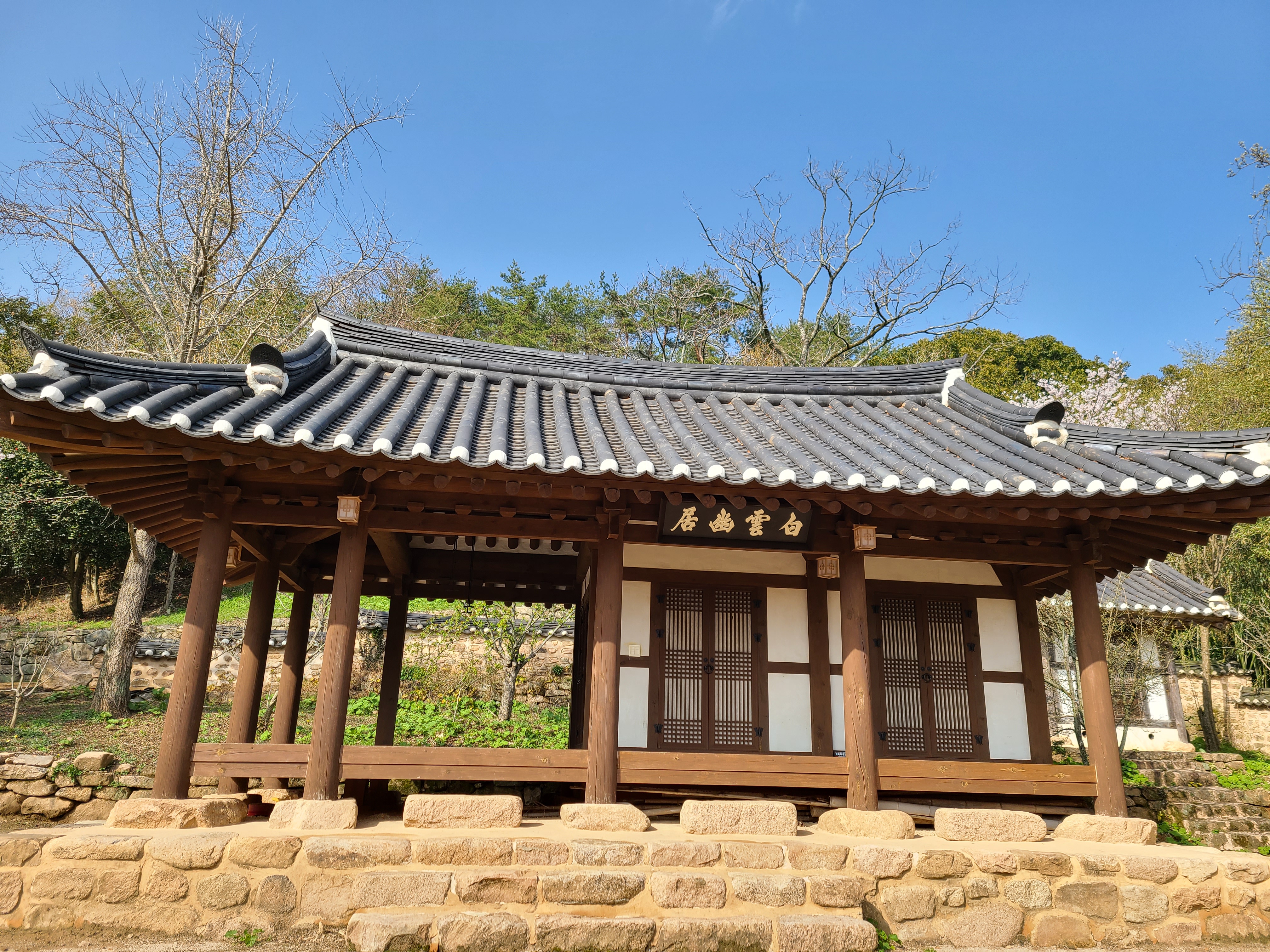 조선 중기에 선비인 이담로가 말년에 둘째 손자인 이언길과 함께 들어와 20년간 은거했던 별장이라고 한다. 해설사 분의 설명으로는 5월에는 이곳에서 가야금 연주와 창을 하는 음악회가 열리고 아래 연못 앞에 있는 정자에서는 오는 관광객들에게 차를 대접해 준다고 한다. 그러고 보니 2년 전 5월에 왔을 때 이곳에서 가야금 연주를 들으며 꽃잎차를 마셨던 기억이 난다. 이 좋은 곳에서 가야금 연주를 들으며 차를 마시고 싶으신 분은 직접 찾아와 보실 것을 권유해본다.