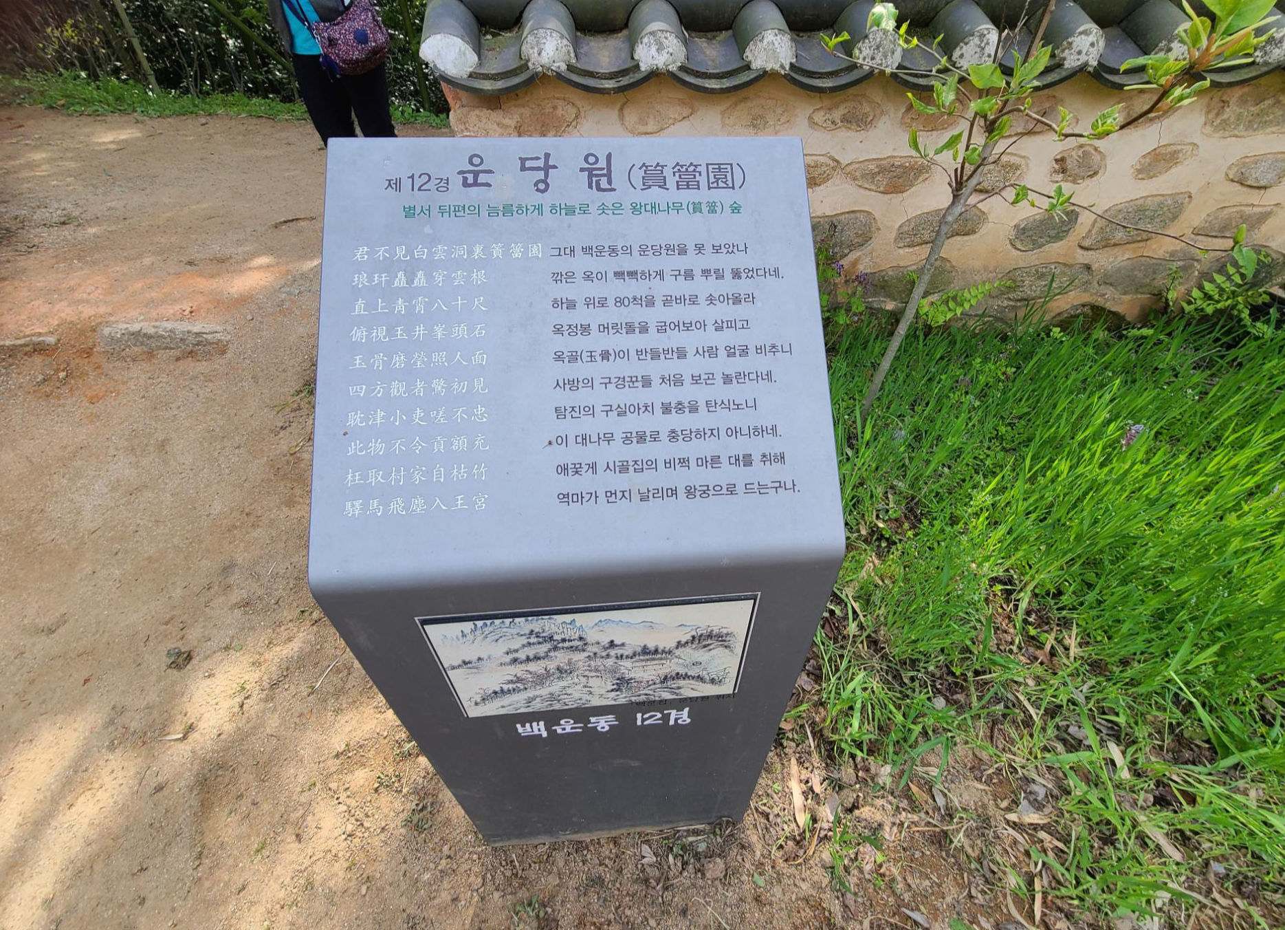 이곳 백운동 별서정원은 대를 이어 관리하고 있는데 현재도 이담로 선생의 12대 후손인 이승현 백운동 현 동주가 관리하고 있다. 3년 전 처음 왔을 때 현 동주를 뵌 적도 있다.
