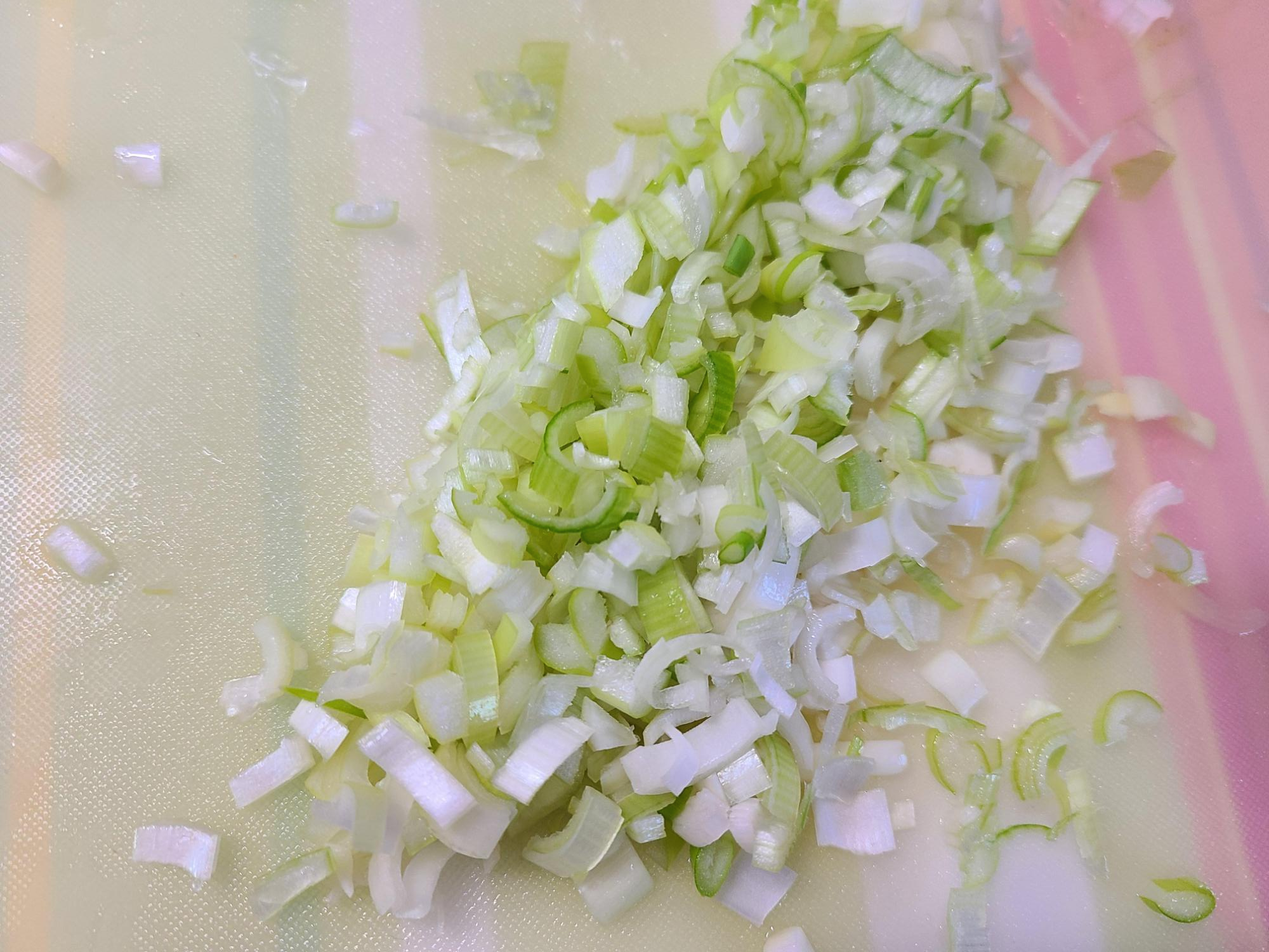 파는 뿌리 부분으로 잘게 썰어주고, 양파 1/2를 채 썰어준다.