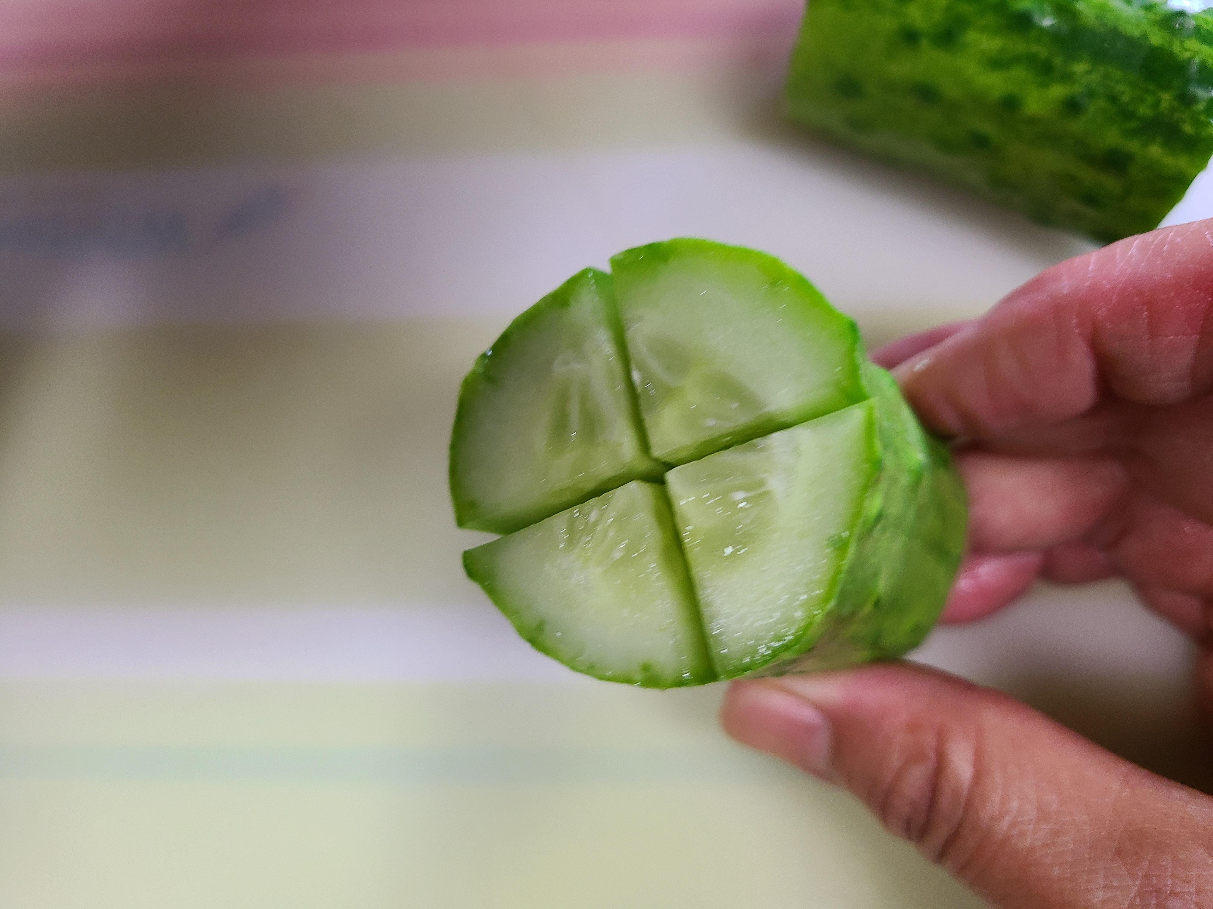 오이는 길이에 따라 3,4등분으로 잘라 준다.