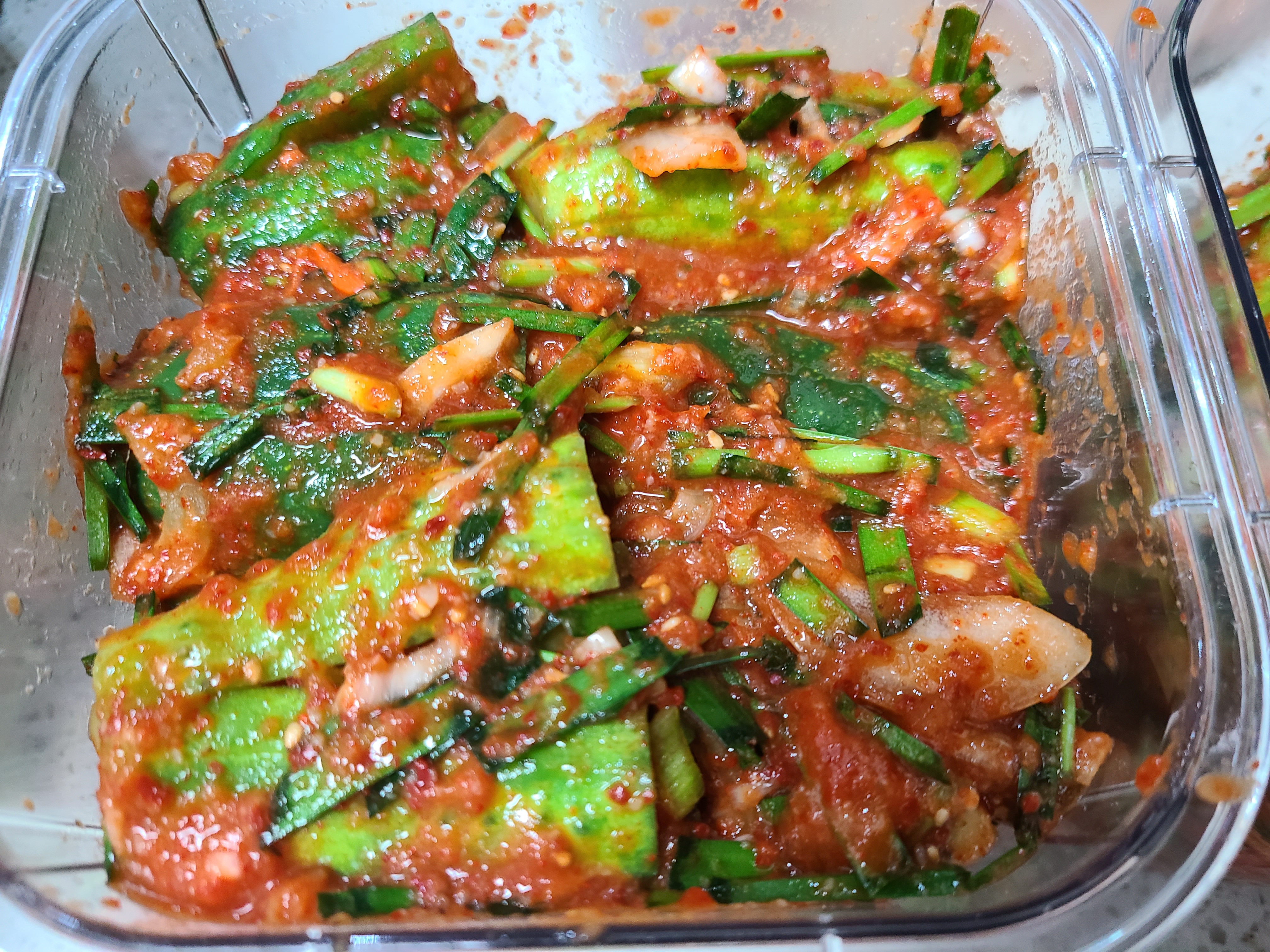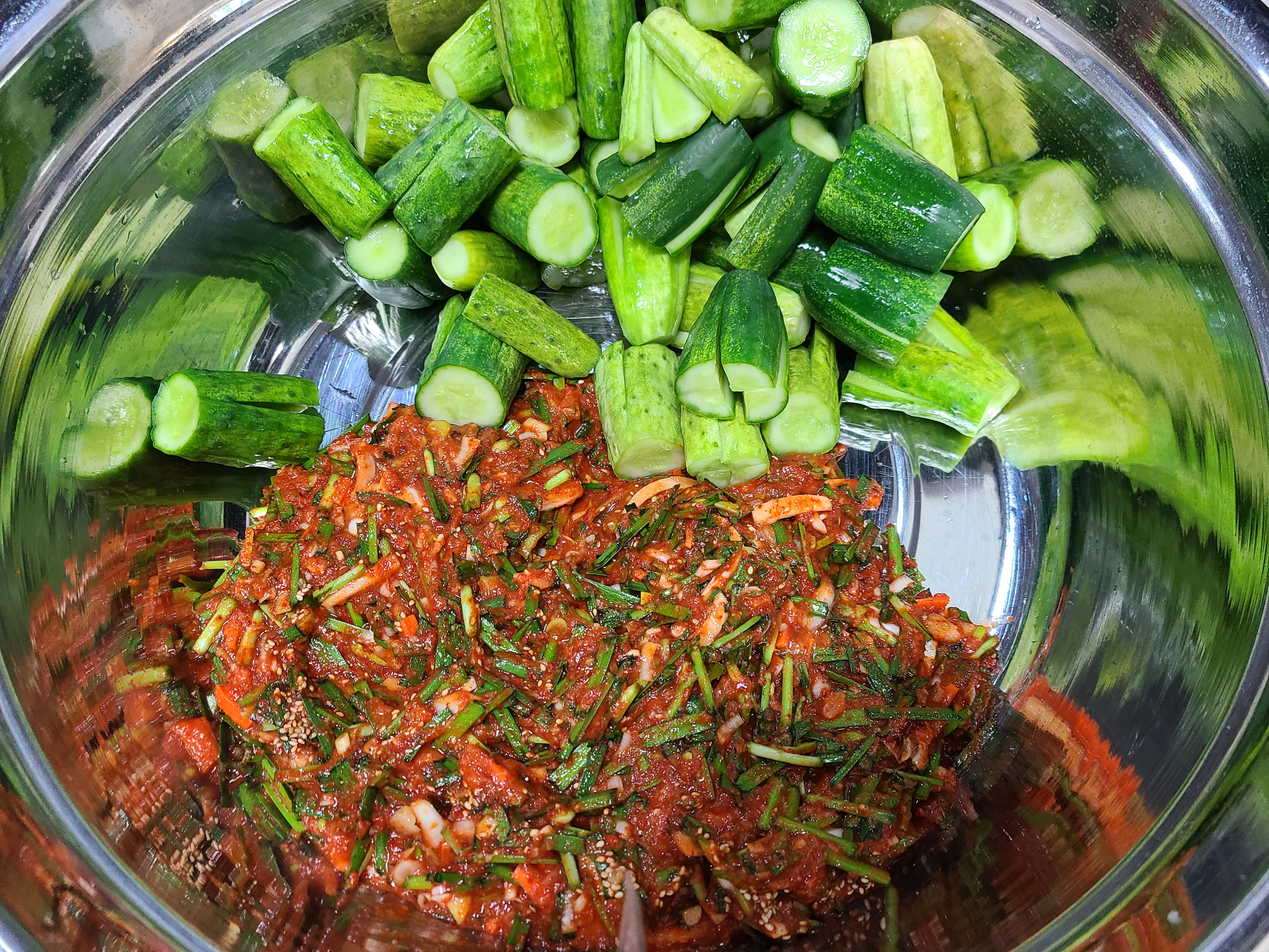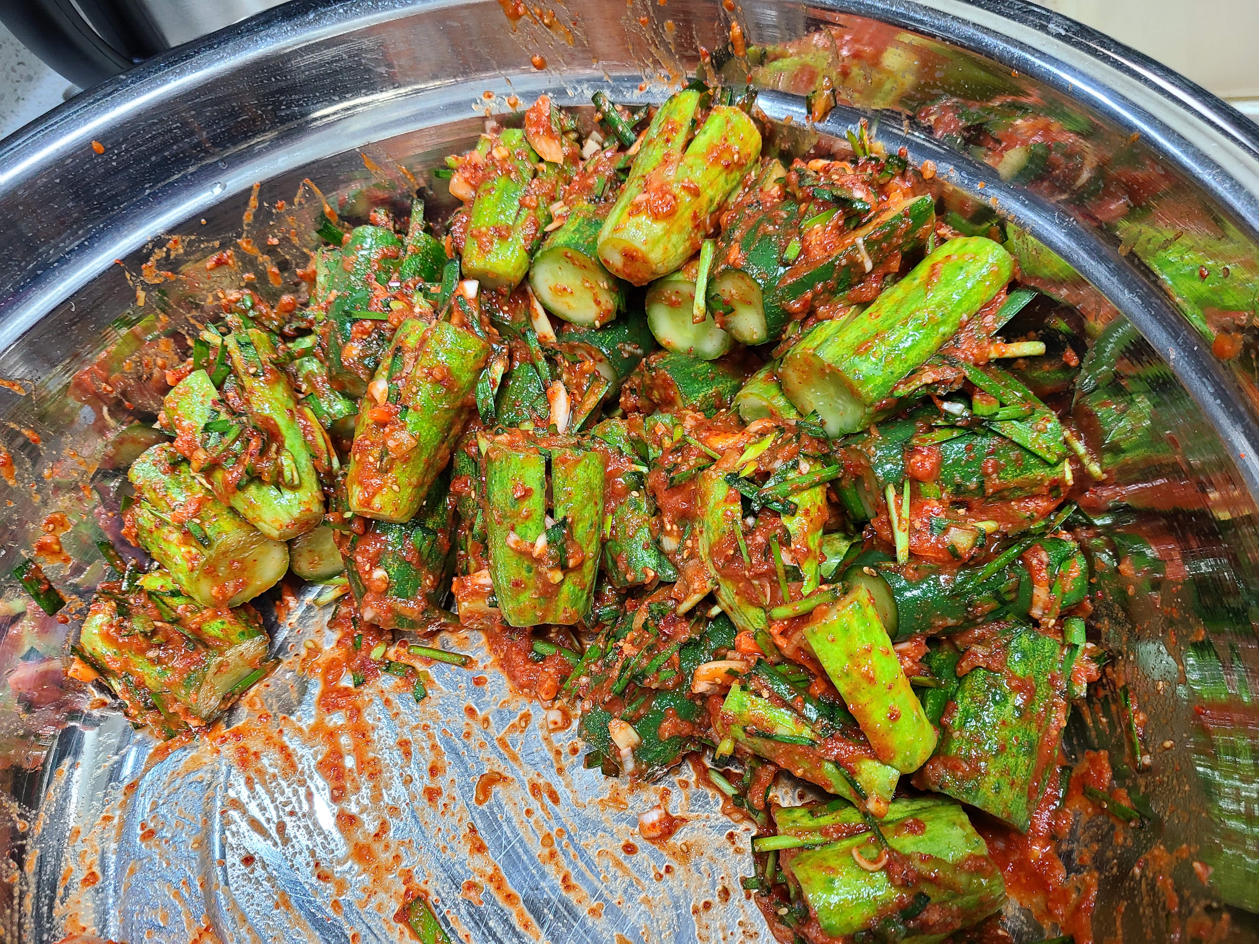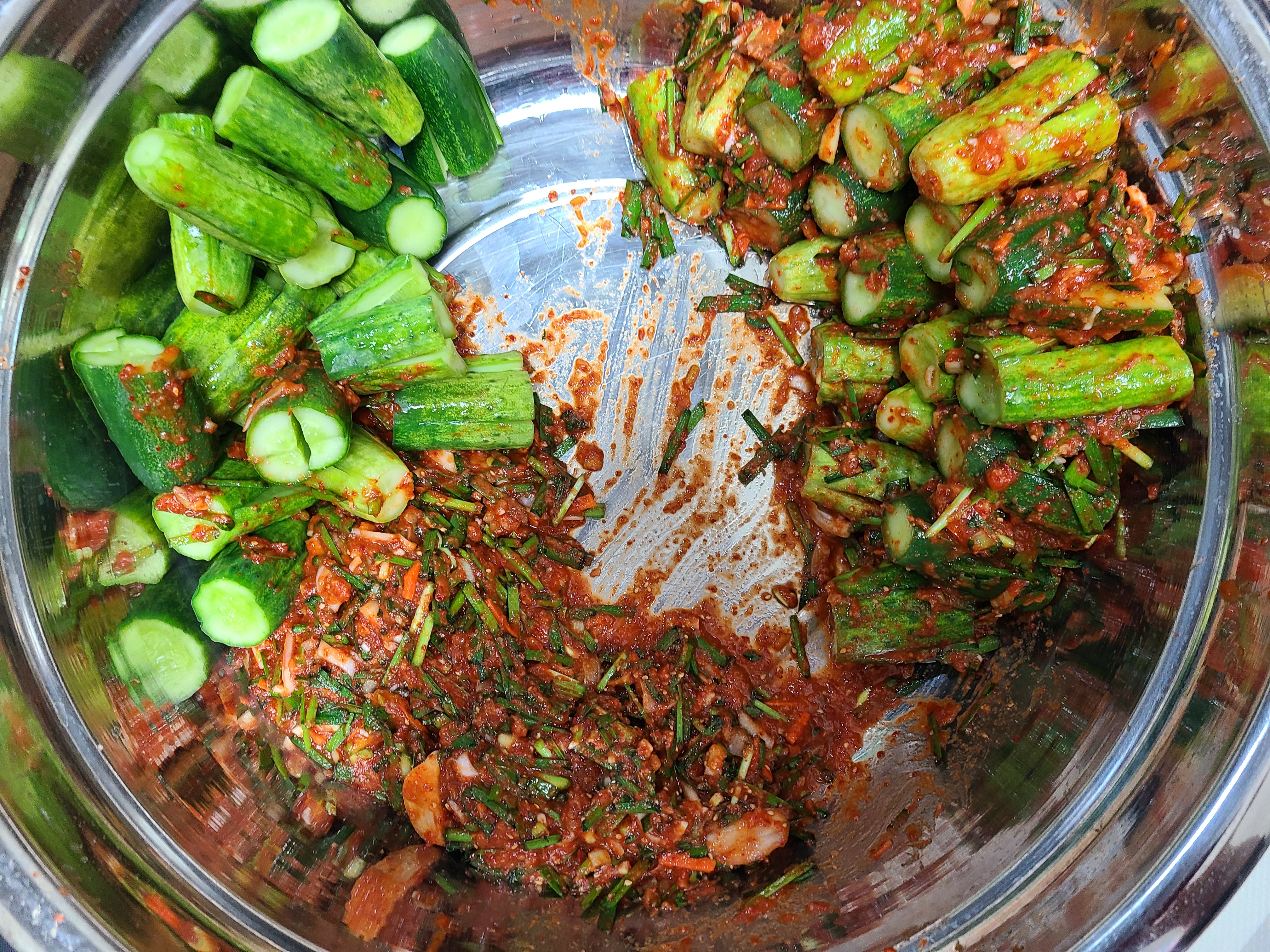 오이 10개에 오이소박이 양념을 다 넣었다. 오이와 양념장의 비율이 잘 맞은 듯하다.