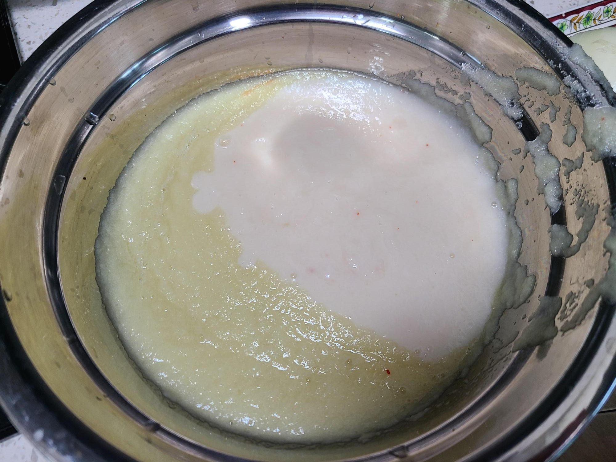 밥 1/2 공기와 생수 100ml 갈아서 넣어준다.