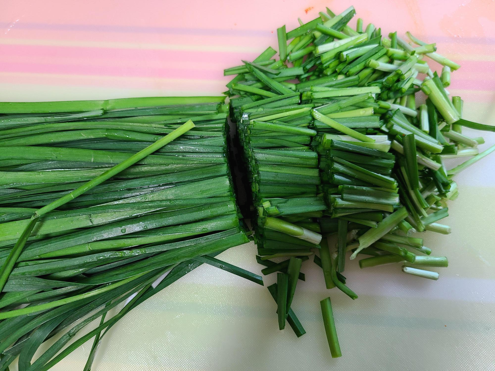 부추를 2~3cm 길이로 썰어준다.